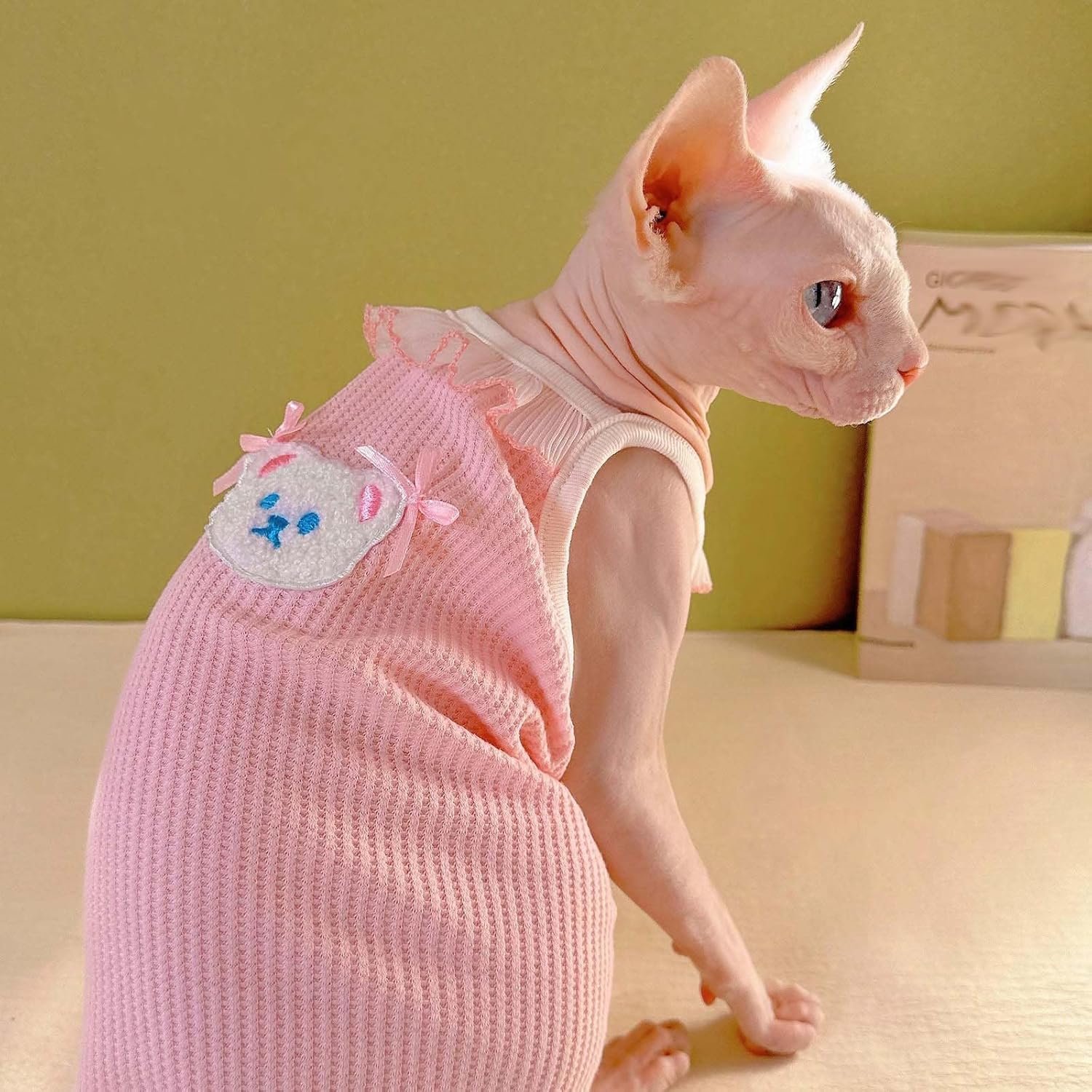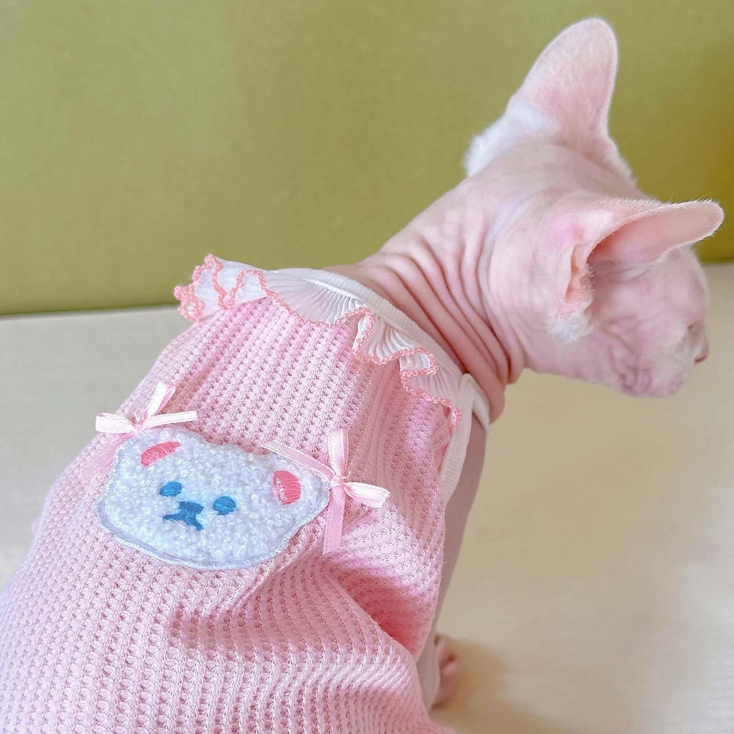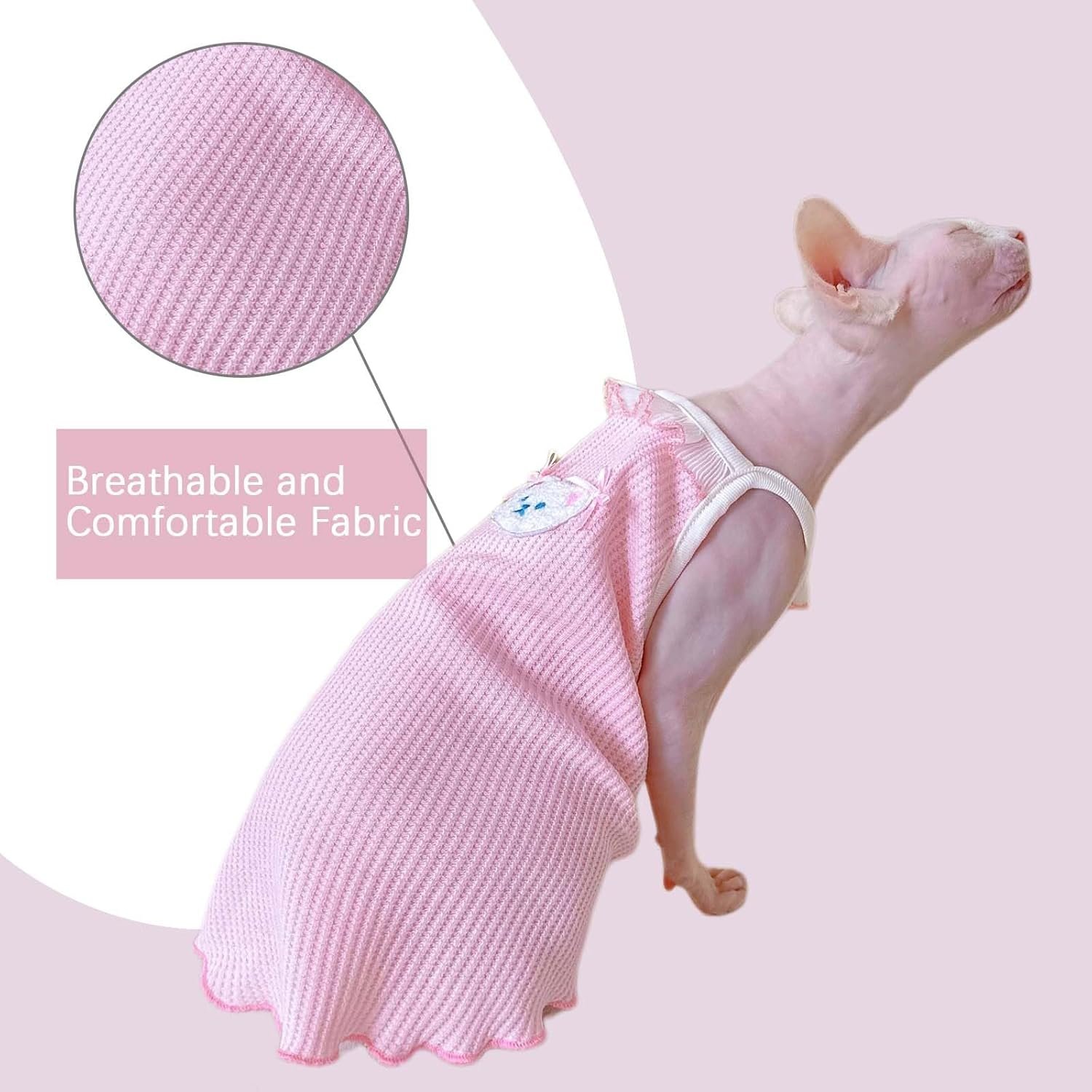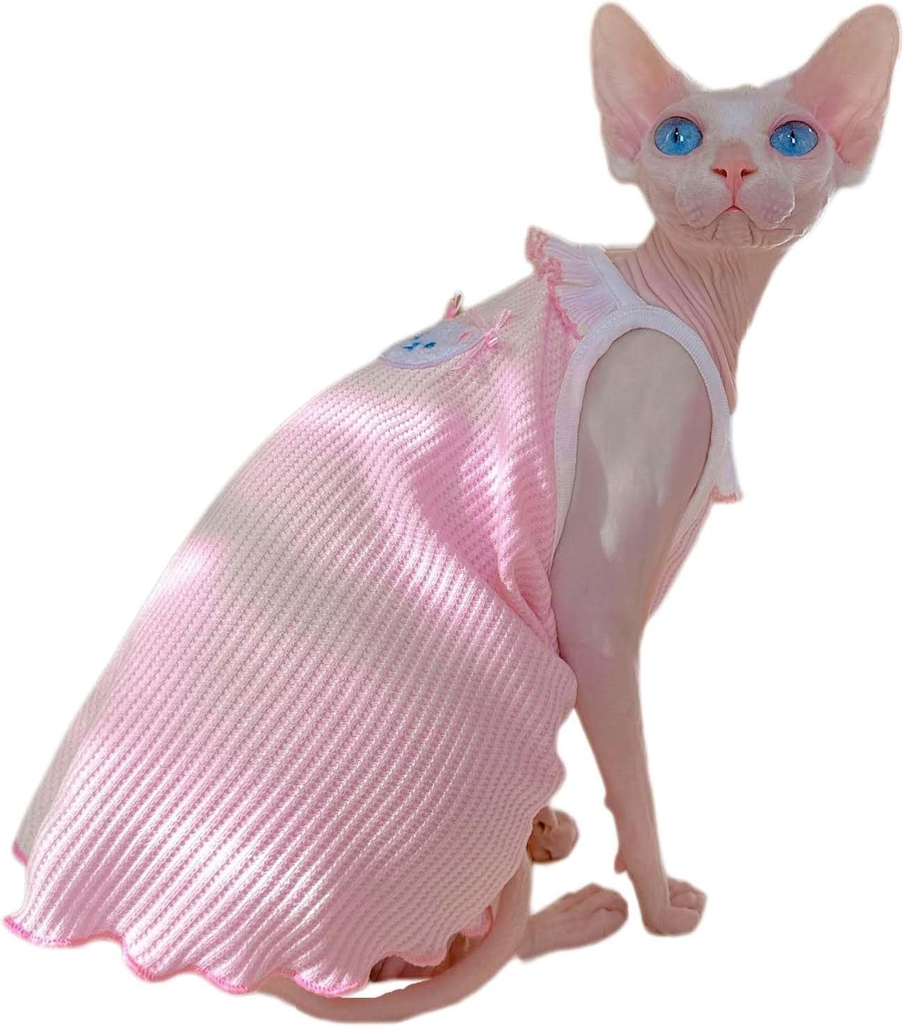 iuoutg毛のない猫の服サマースフィンクスドレスソフト通気性ペットパジャマピンクの子猫サンドレスかわいい猫アパレル