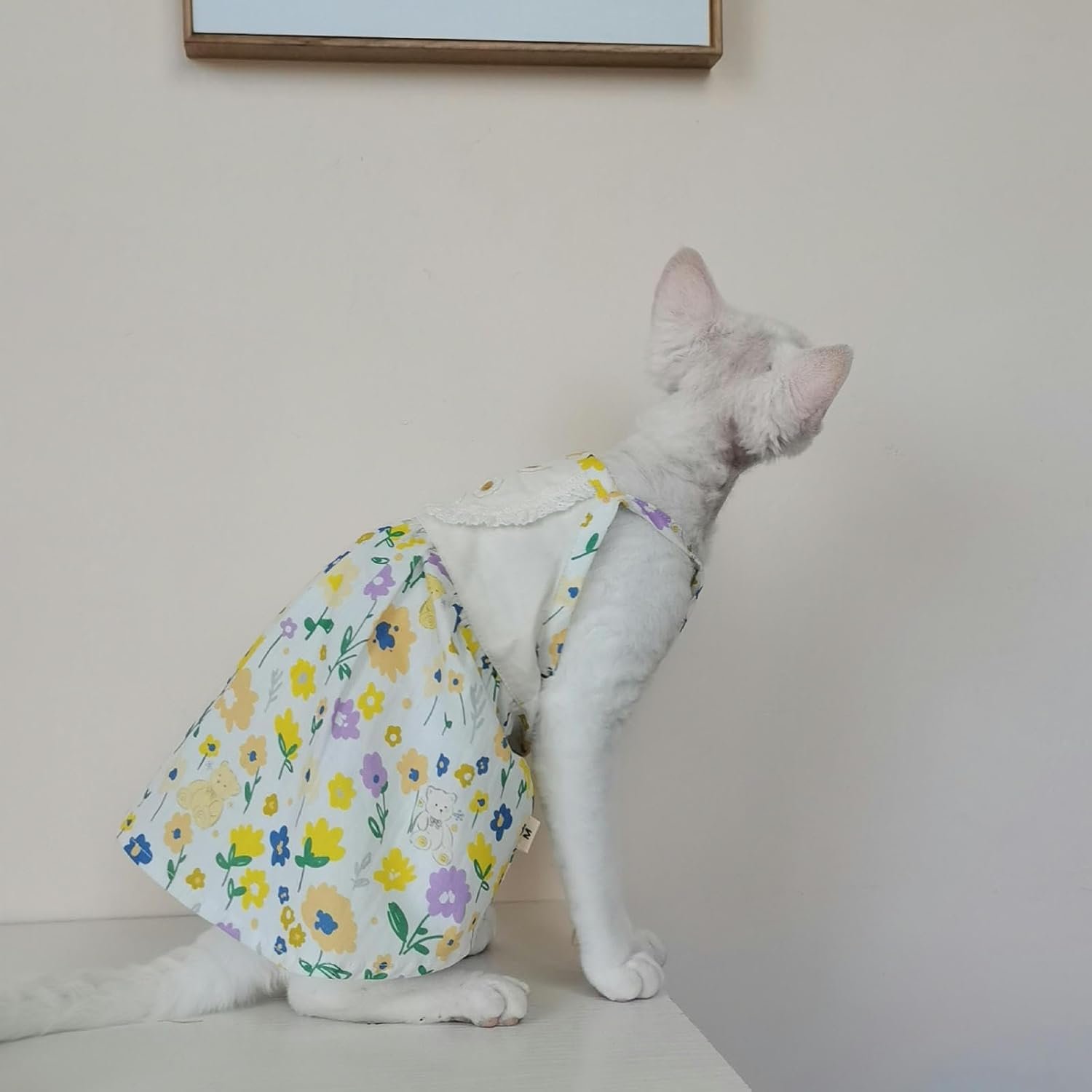 かわいいデザイン:sphynx 猫服はデザインが美しく、猫のスカートには花柄のデザインがあり、背中には独特のデザインがあり、あなたのペットを人ごみの中でキラキラさせます。通気性のある猫のプルオーバーは、シンプルでエレガントです。