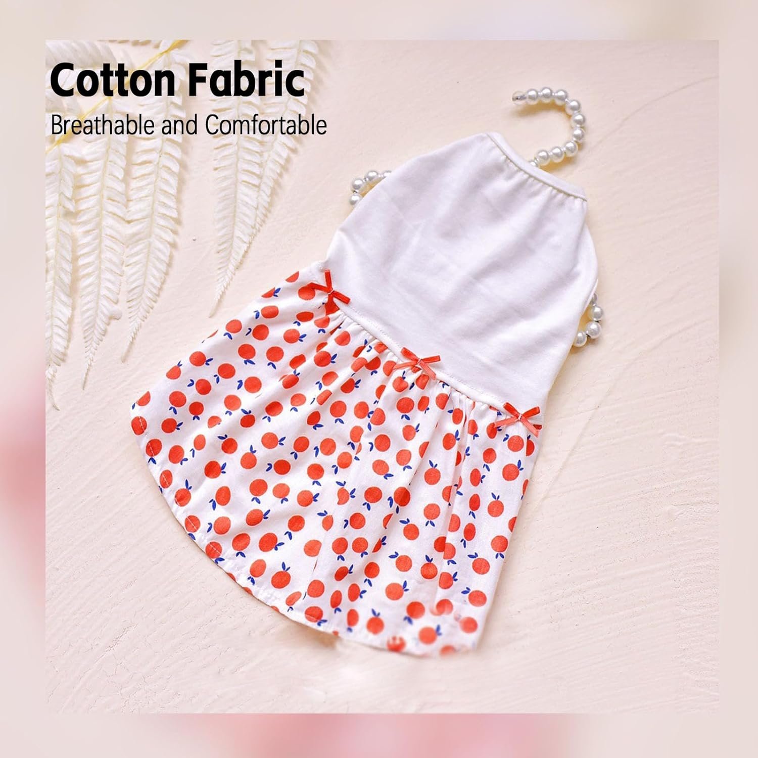 かわいい猫の花のスカート:かわいいフルーツプリントと絶妙なミニリボン装飾を備えたシンプルなスタイルの猫シャツ。子犬や子猫をかわいくてスタイリッシュにします。あらゆる機会に適しており、ペットの服と一致するのに最適です