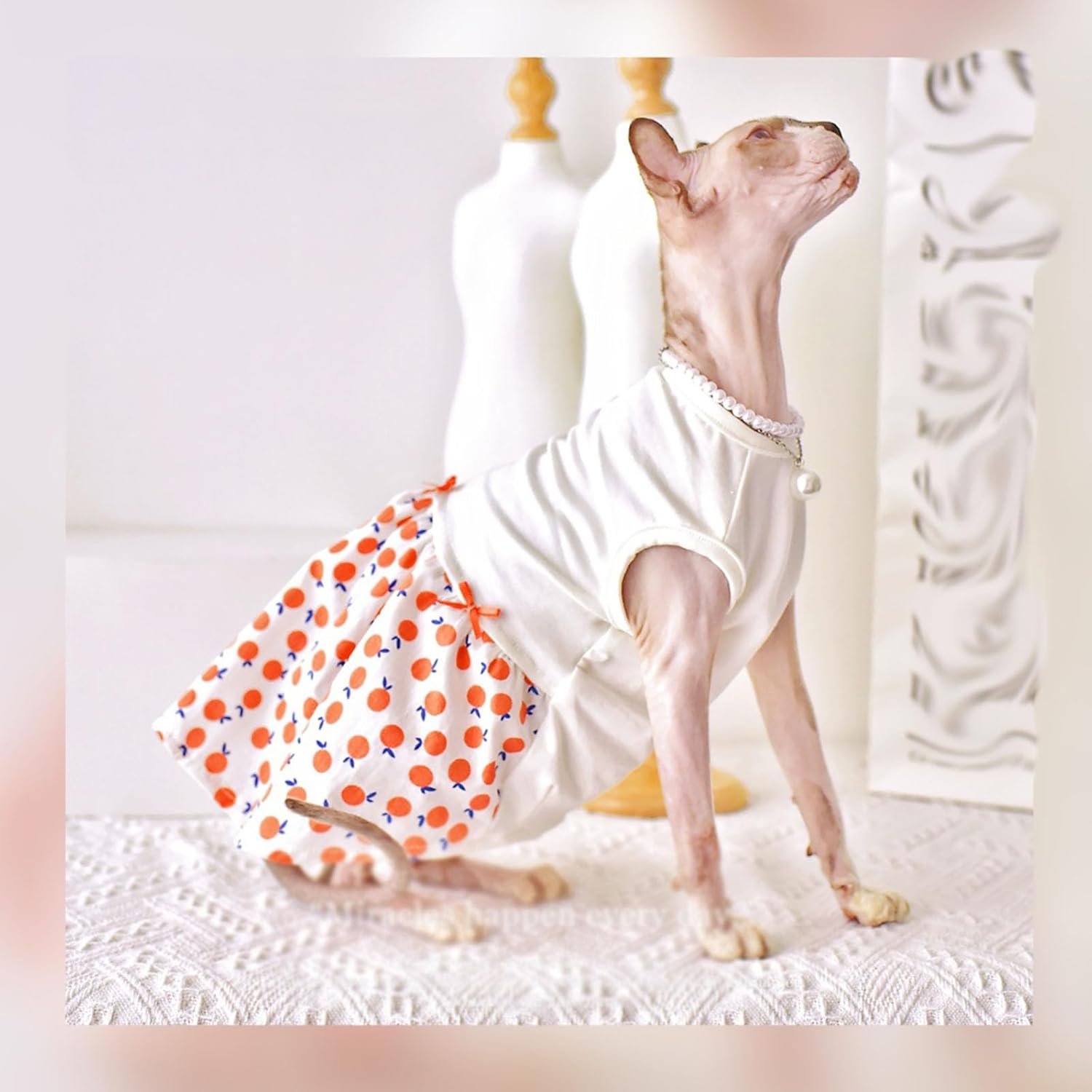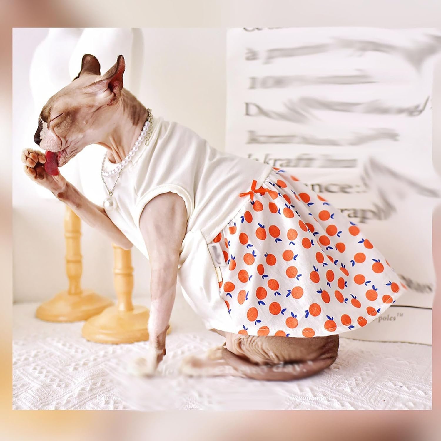 iuoutg sphinx毛のない猫服キッテンスカートコットンキャットTシャツかわいいプリント猫夏猫アパレルベストコーニッシュレックスデボンレックスピーターバルド
