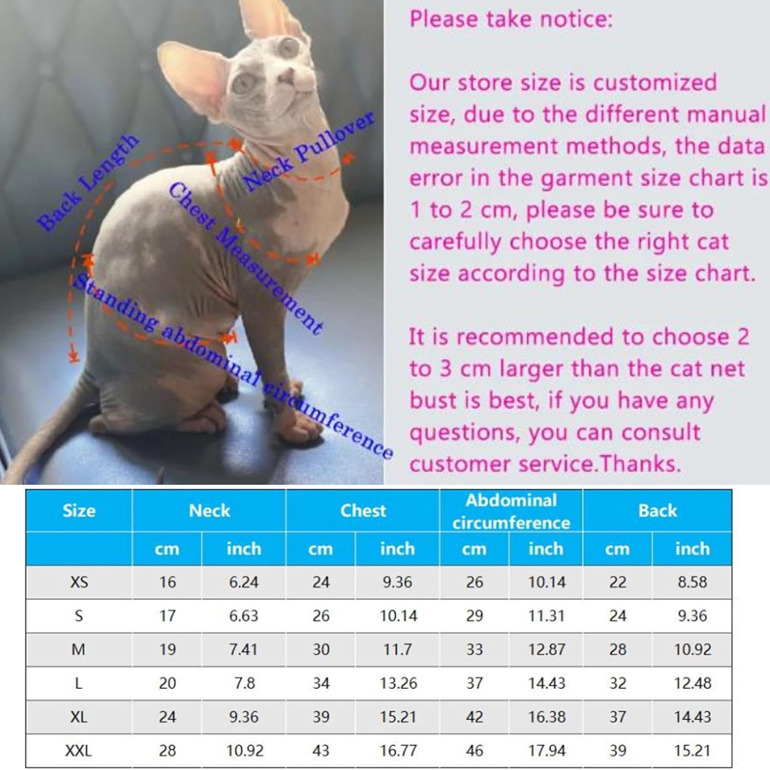 サイジングガイド:これらのサイジングの推奨事項はすべて、毛のない猫のみです。詳細なサイジング情報については、注文する前にサイズチャートを参照し、猫を測定してください。あなたの猫が無毛ではなく、私たちの猫の服が大好きな場合は、より大きなサイズを選択してください。