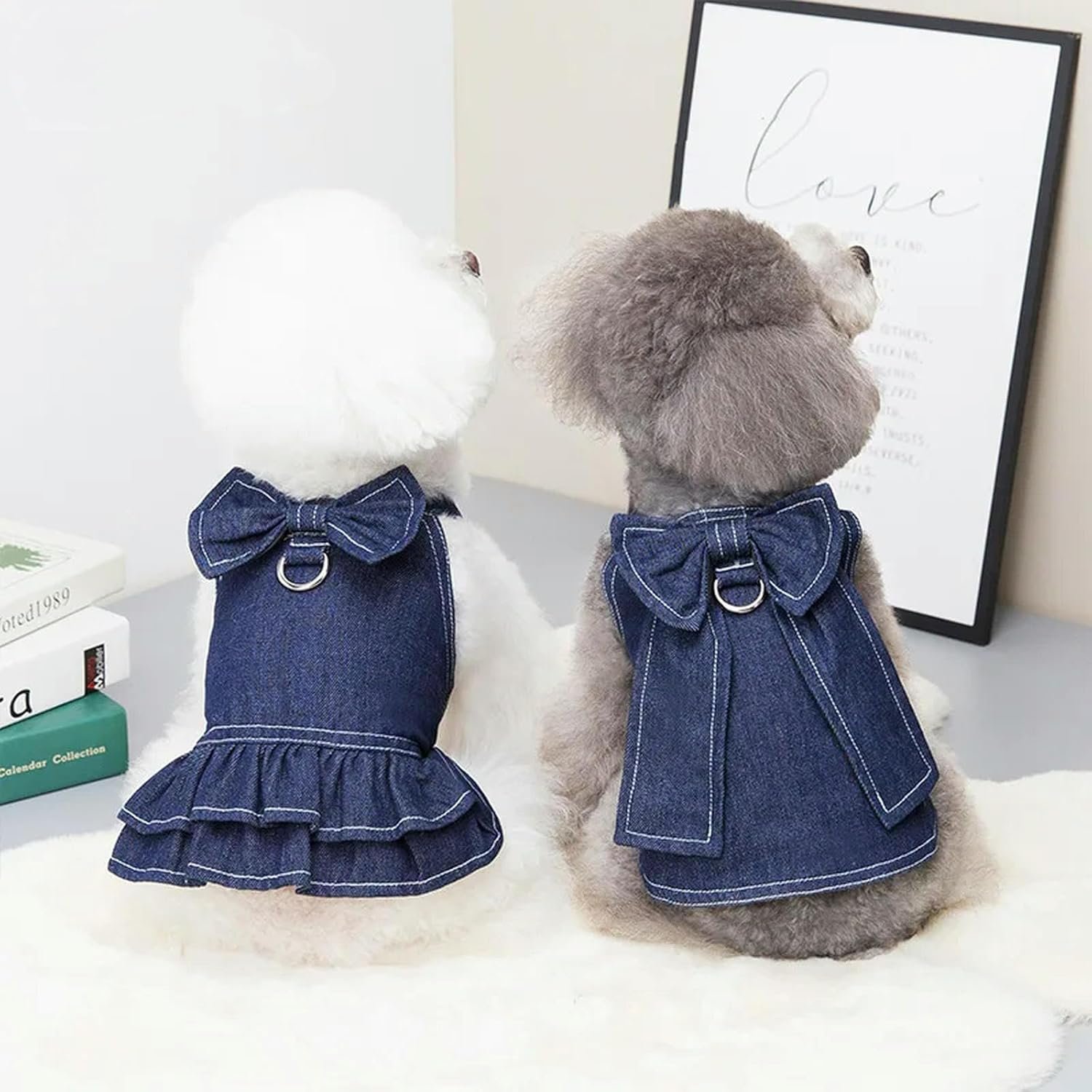 犬のハーネスドレス:この小さな犬のドレスには、ひもを確保するために背中に Dリングがあります。毛皮のような友人の毎日の散歩のための便利な小さな犬の衣装にしてください。