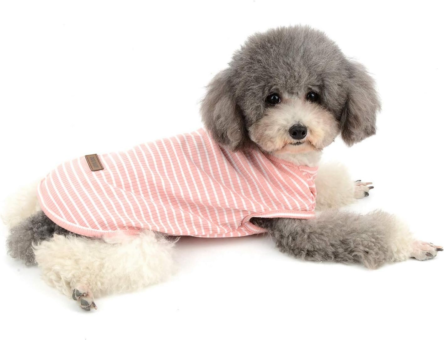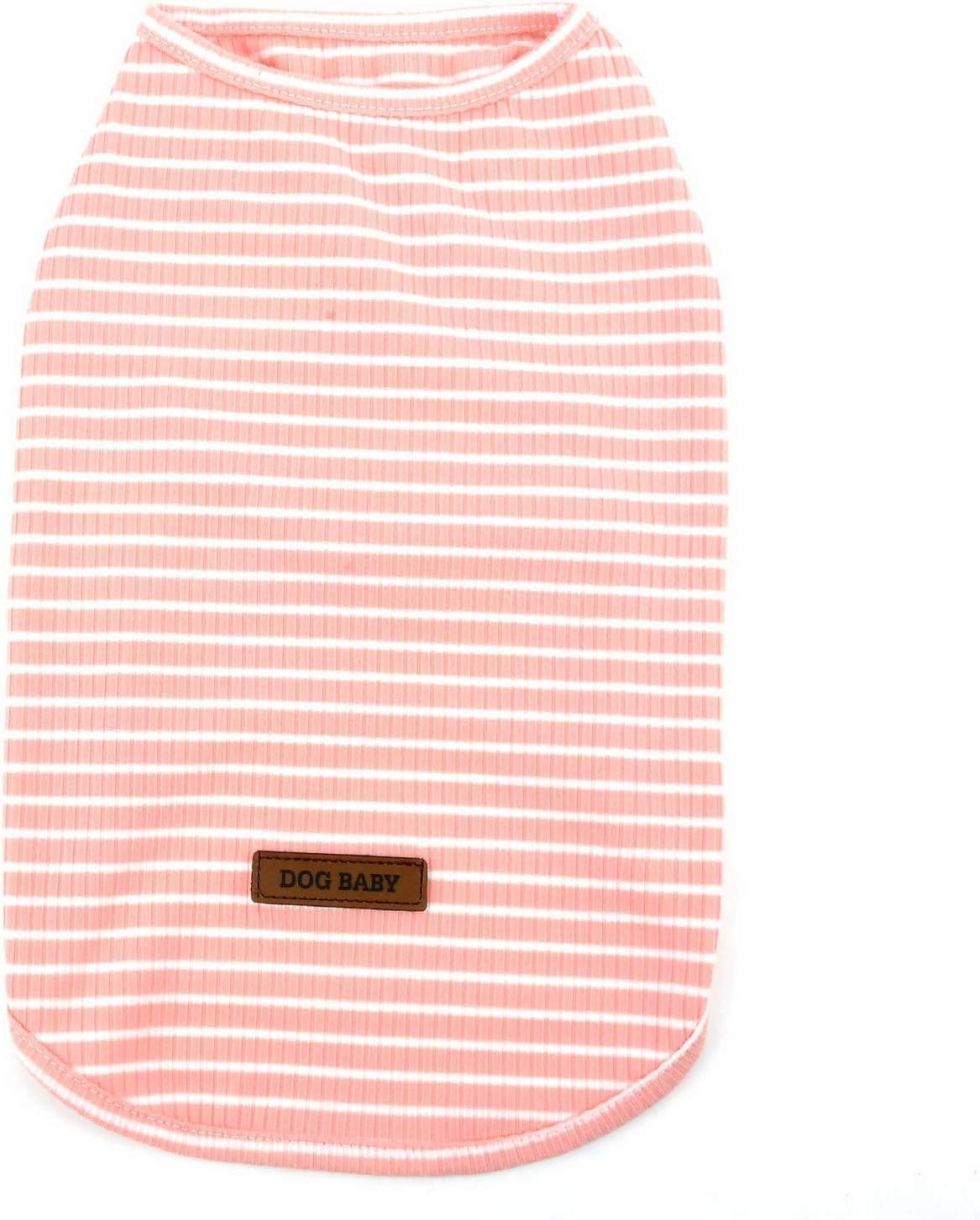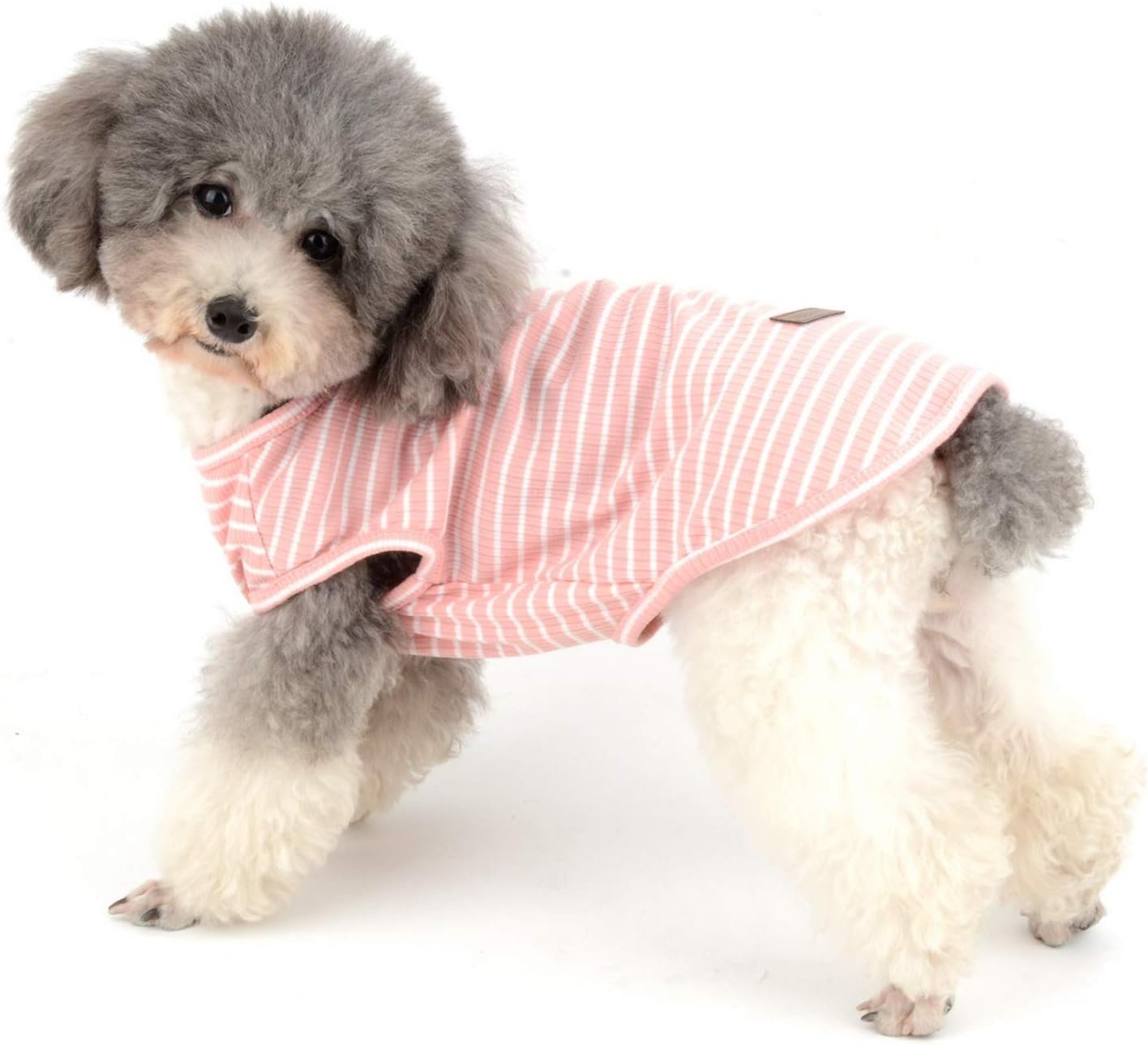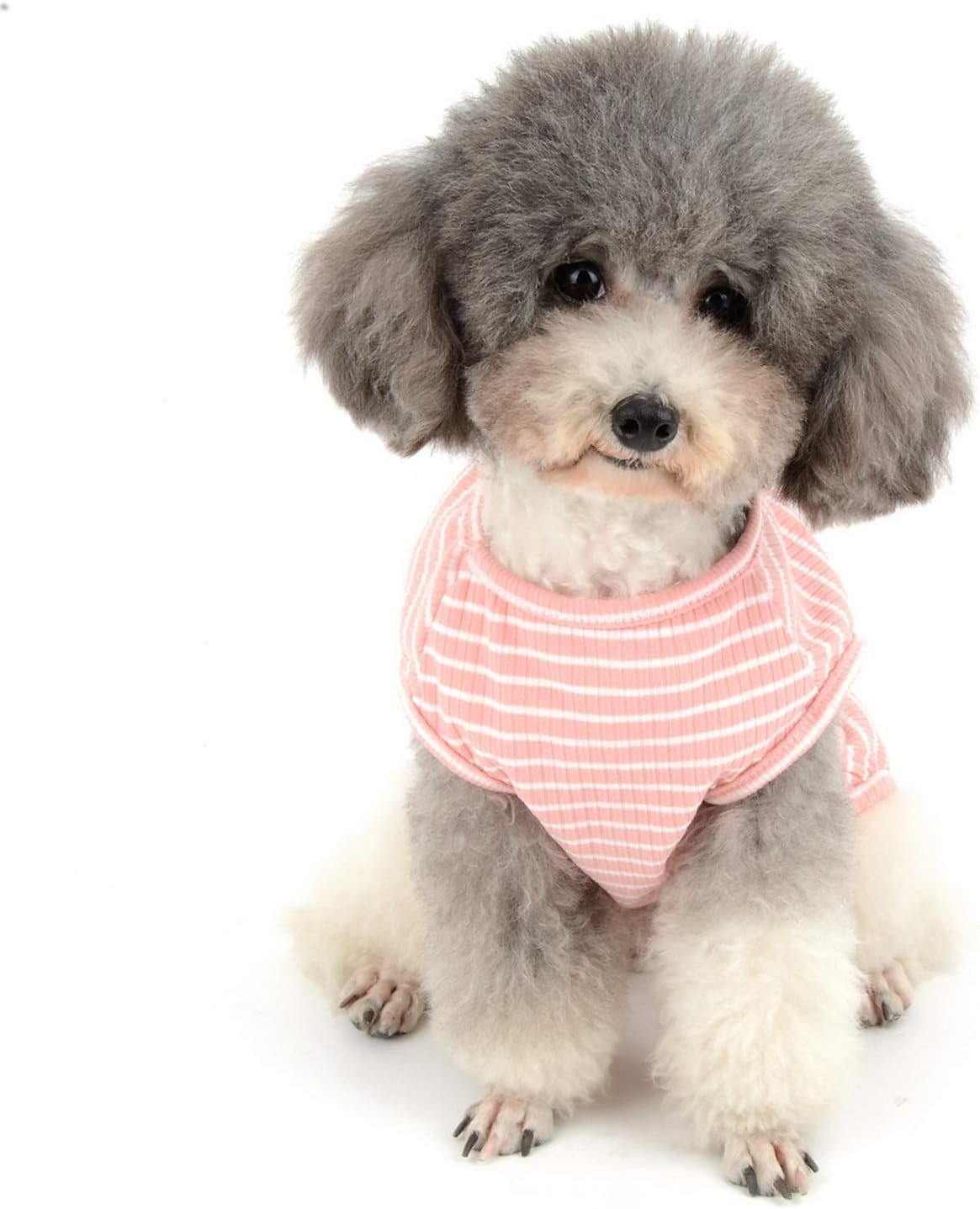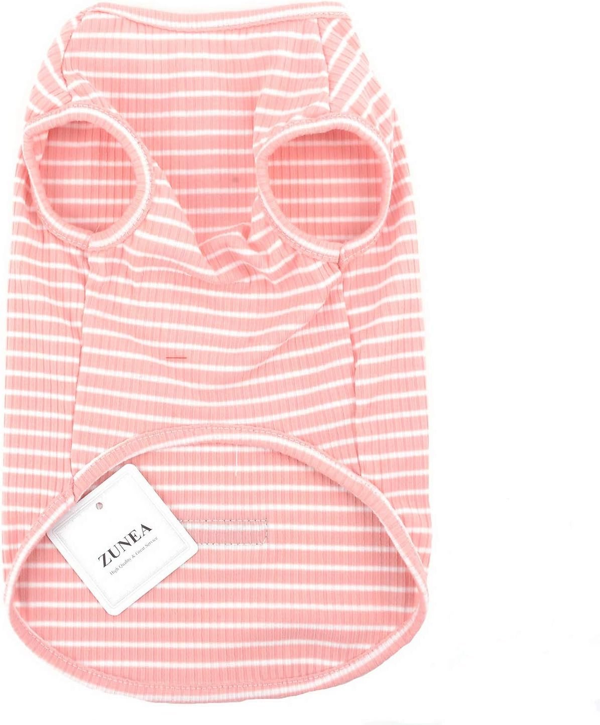 Zunea Pet Tシャツ、犬の服、夏、ボーダーパターン、ベスト、クール、小さな犬、柔らかい犬、コットン、タンクトップ、猫の服、ファッショナブル、かわいい、シャツ、脱落保護、肌寒い、犬の服、子犬服、ウォーキング、ピンク、xxl