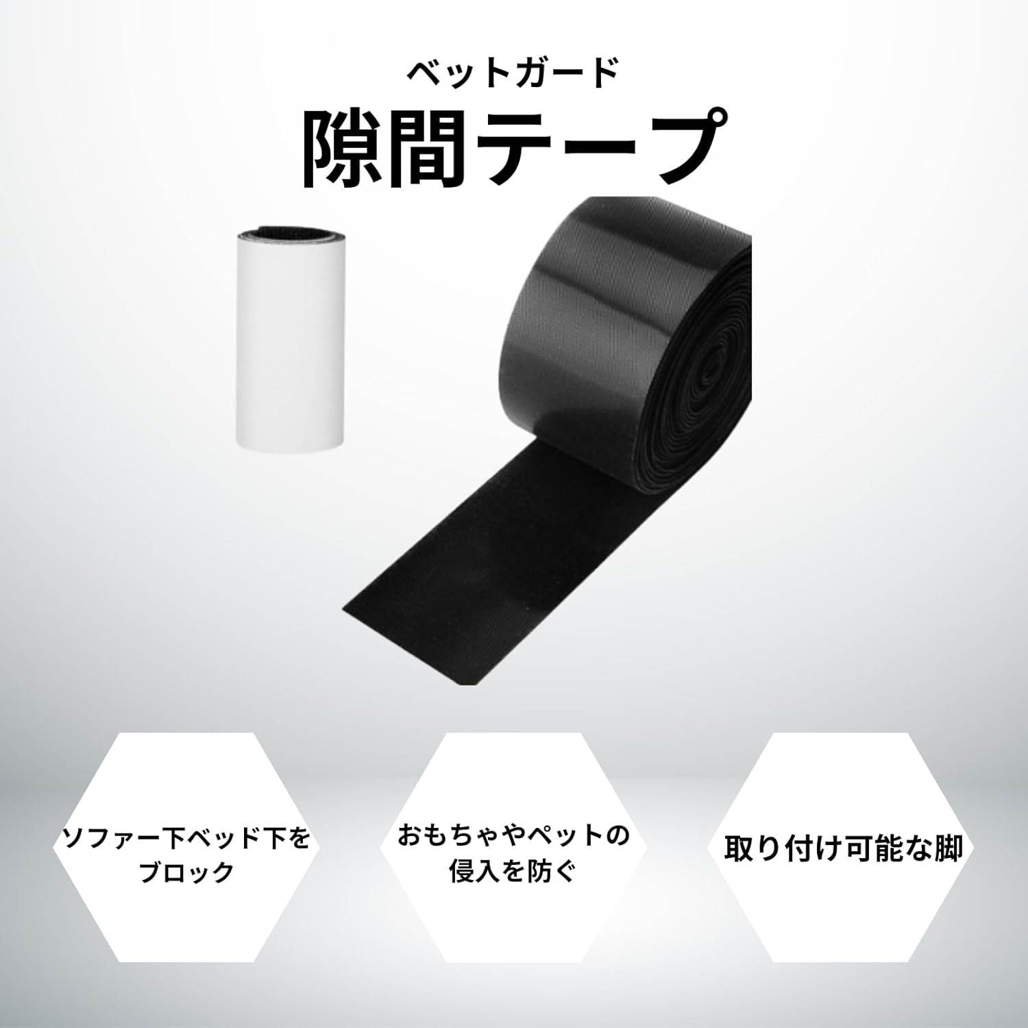 ココロギャップテープベッドガードソファベッドアンダーベッド侵入予防ストッパーブラック(幅2.0 x長2.4フィート(6 m)