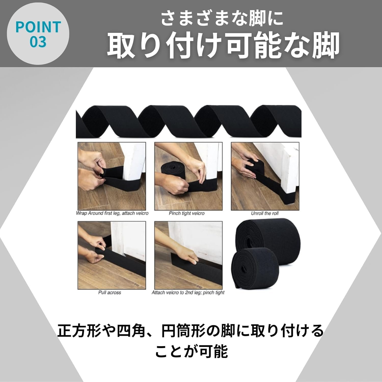 正方形、正方形、円筒形の脚に取り付けることができます。テープオンデザインはテクスチャの脚に固執しませんギャップテープは床に平行に配置されるため、脚を上げた脚と互換性がありません。