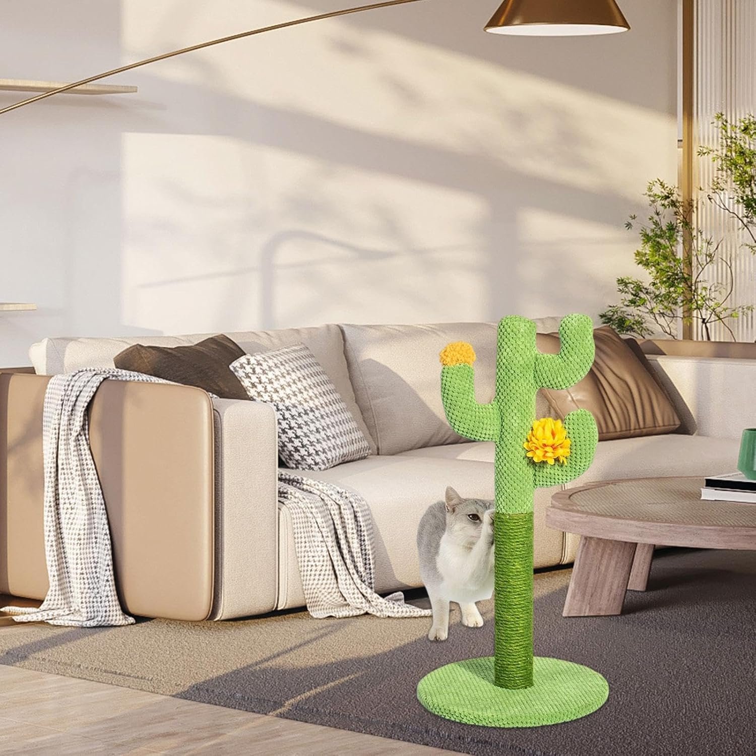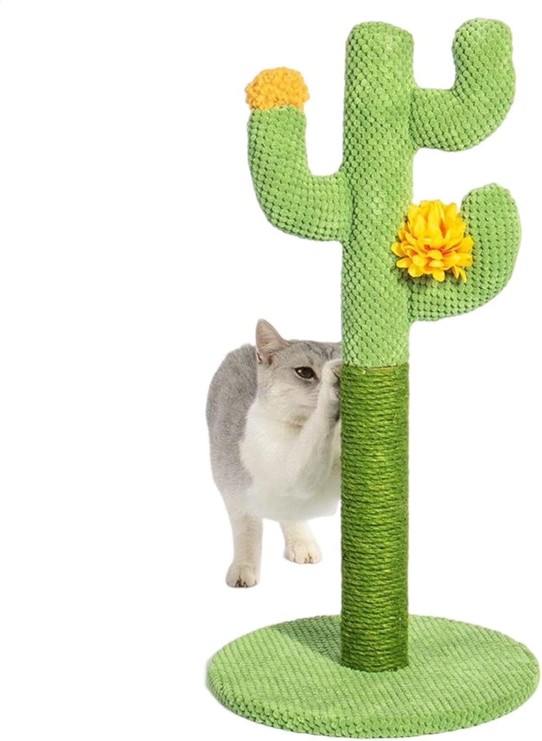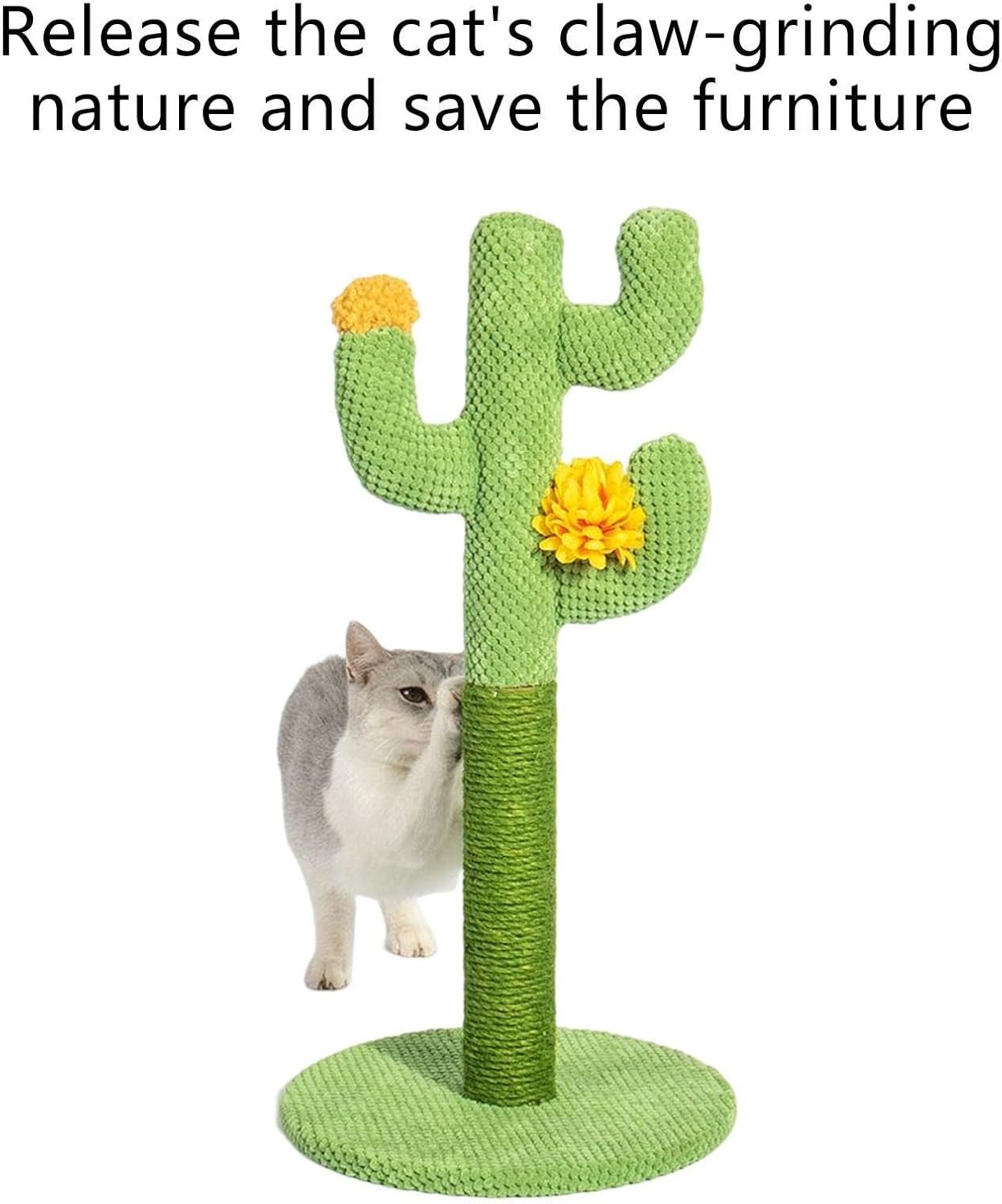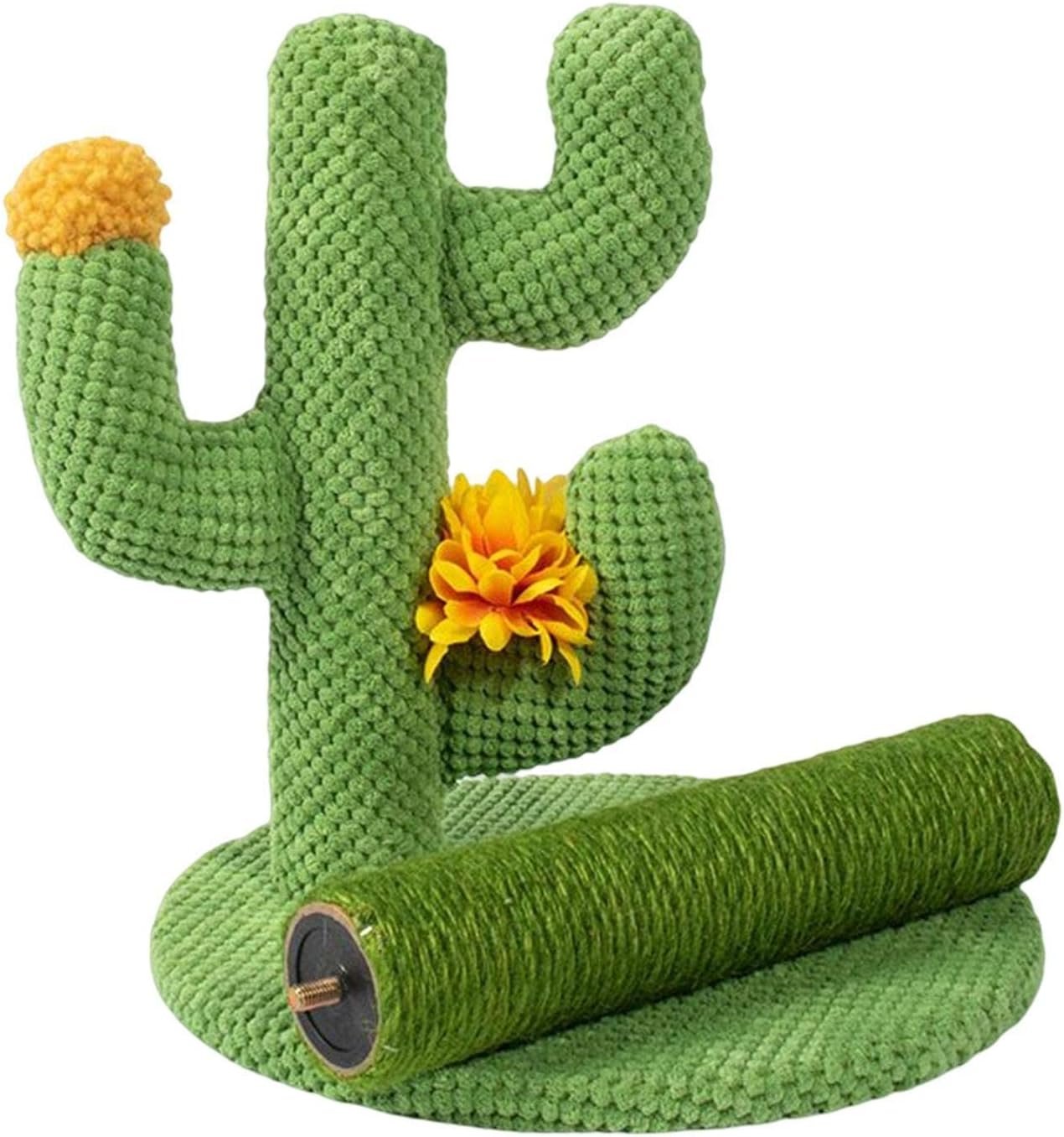 wried幅の幅の使用】サボテンキャットスクラッチツリーは、猫が演奏、ストレッチ、スクラッチ、自由に快適に登り、幸せな時間を楽しむためのいくつかの小さな黄色い花を備えた多機能の猫の爪シャープナーポストです。