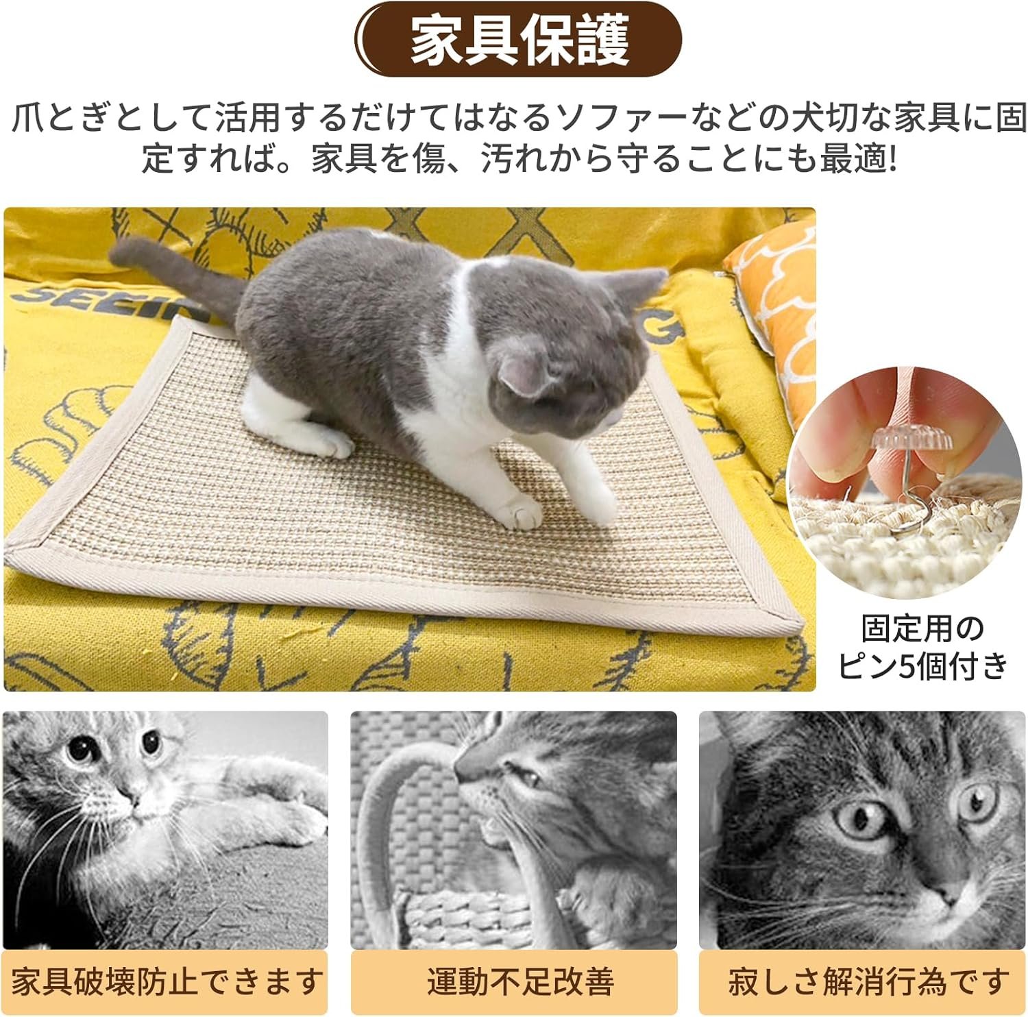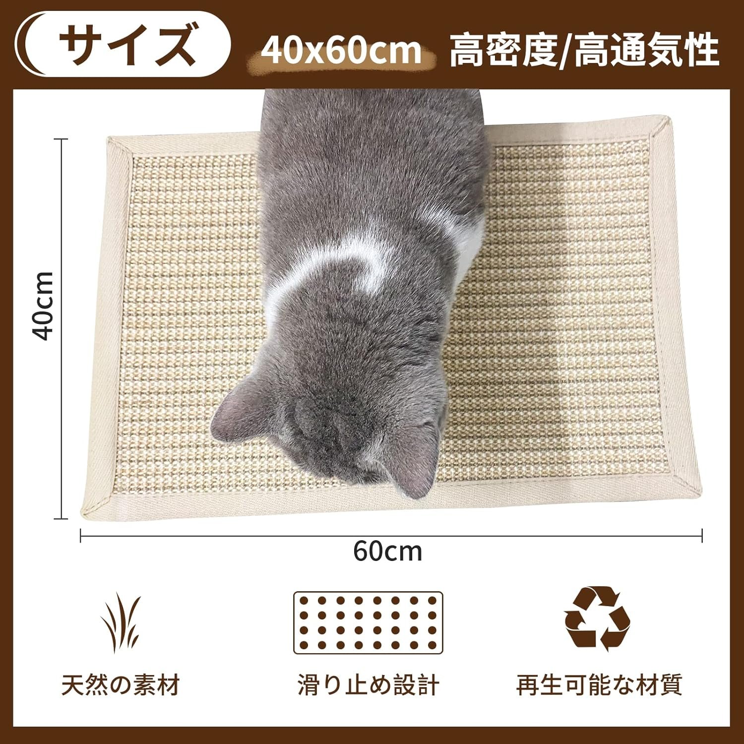 デューエルキャットクローシャープナーマット15.7 x 23.6インチ(40 x 60 cm)、猫スクラッチマット、高密度天然サイザル、夏、猫のおもちゃ、ソファ家具、ストレスリリーフ