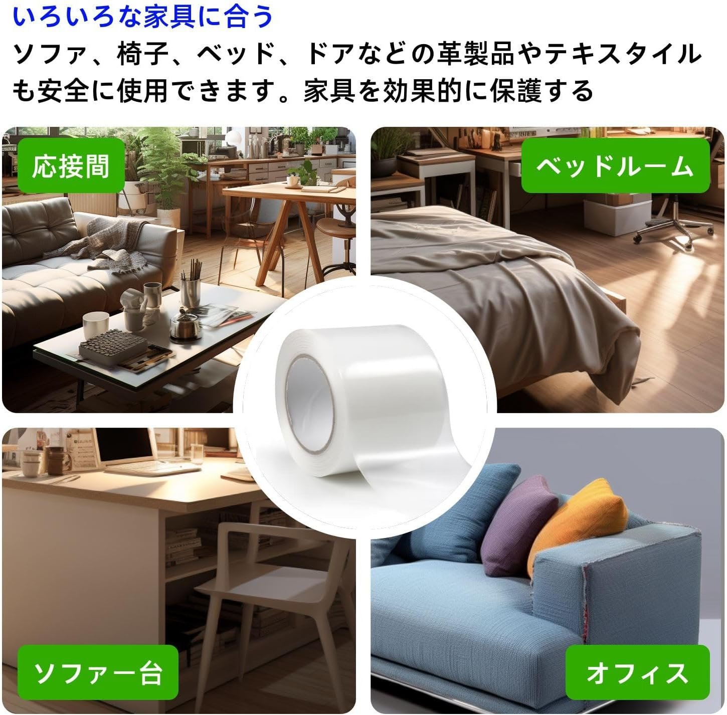 幅広いアプリケーション:ソファ、椅子、ベッド、ドアなどの革製品やテキスタイルで安全に使用できます。家具プロテクターテープは、猫の傷から家具を保護します