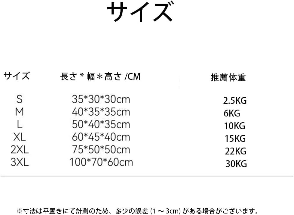 【全犬種サイズ対応】犬・猫どちらにも対応可能です。周囲のインテリアに合わせやすい落ち着いたデザインです。推奨サイズ:S:2.5kg、S:2.5kg M:体重6kg以内のペット。 L:体重10kg以内のペット。 XL:体重15kg以内のペット。 2XL:体重22kg以内のペット。 3XL:体重30kg以内のペット