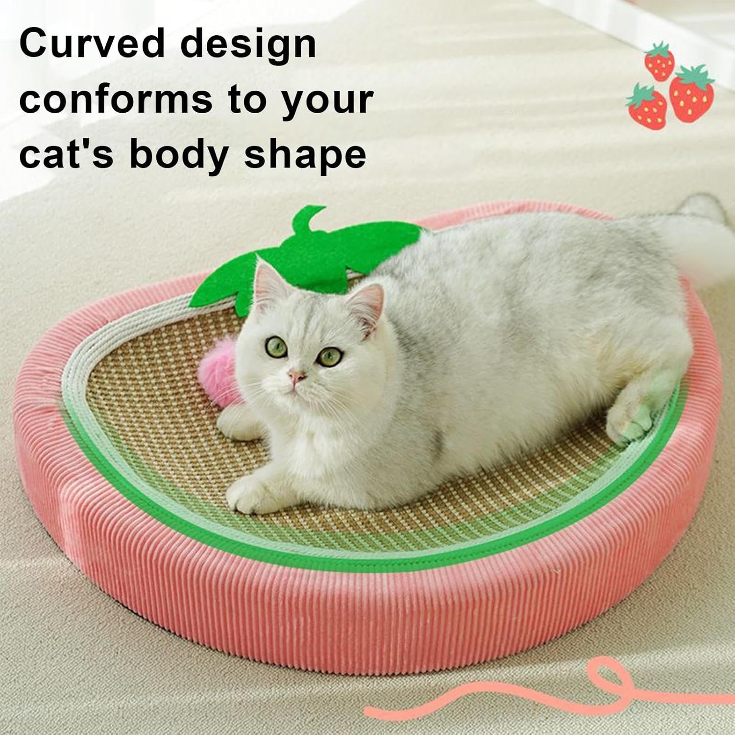 猫のスクラッチベッド、サイザルストロベリー子猫ベッド キャットスクラッチボード – スリーピングパッド家具プロテクターホームドームカーペットソファ椅子壁アパートメント子猫小犬