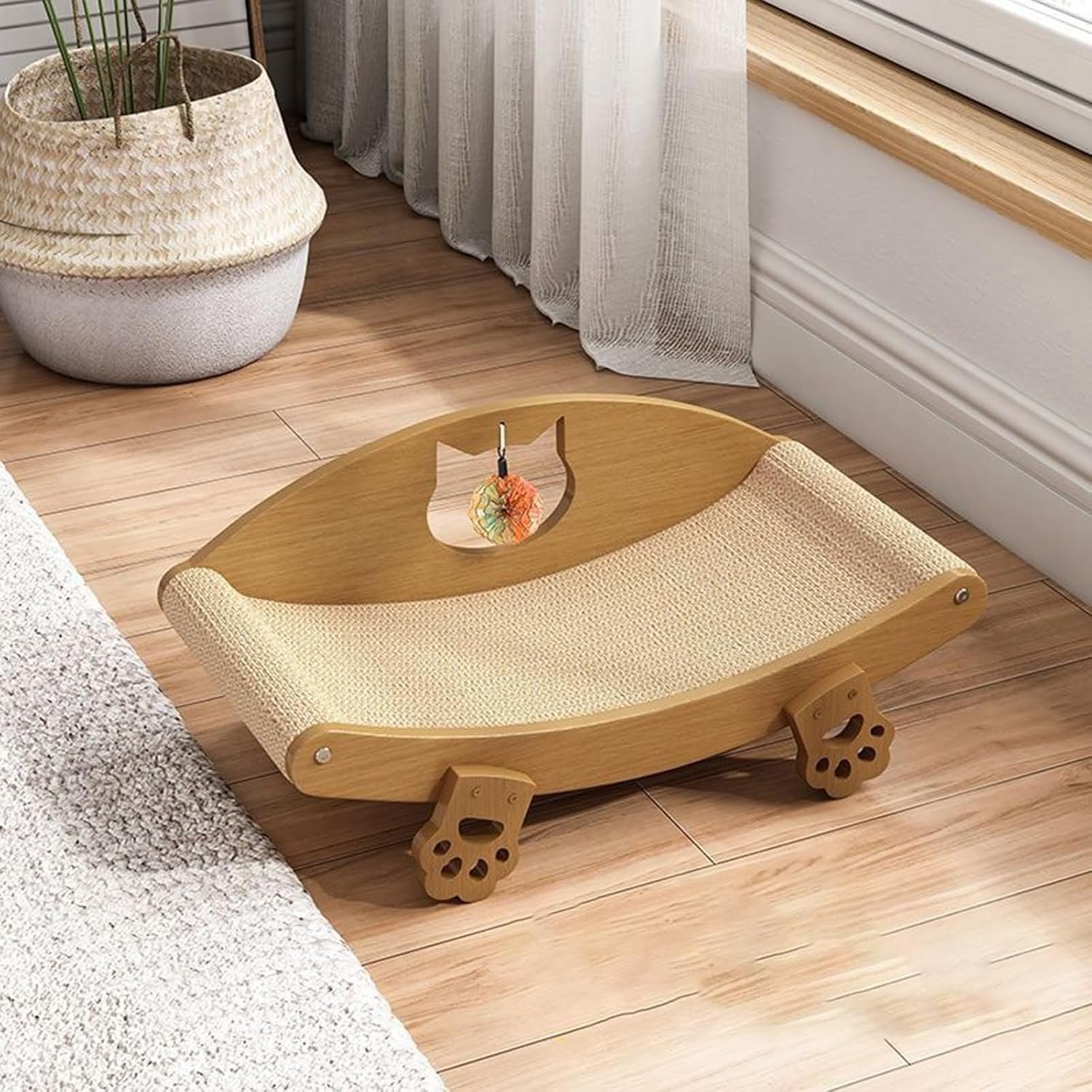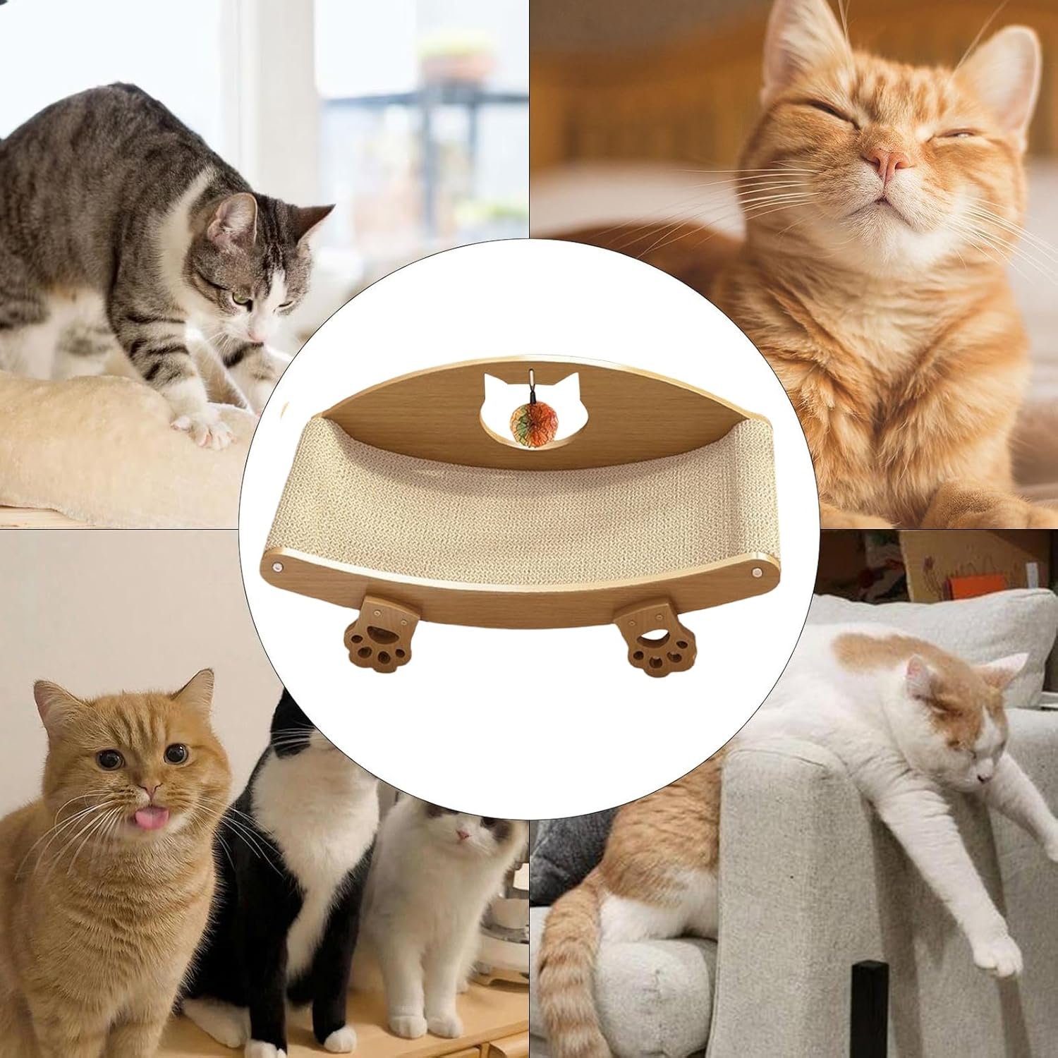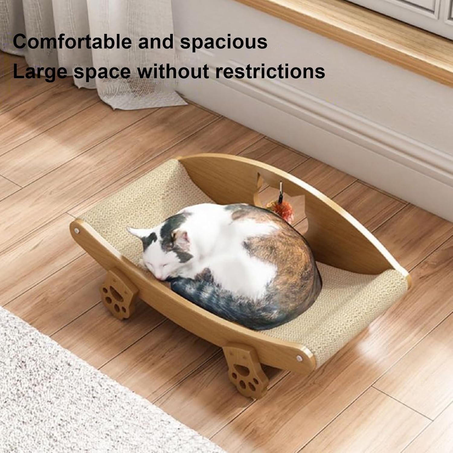 スマートスペースの利用:スマートに設計された2-in-1 スクラッチベッドは、必須の機能を統合し、猫に家庭環境でスペース効率を確保しながら、遊びや休息の場所を提供します