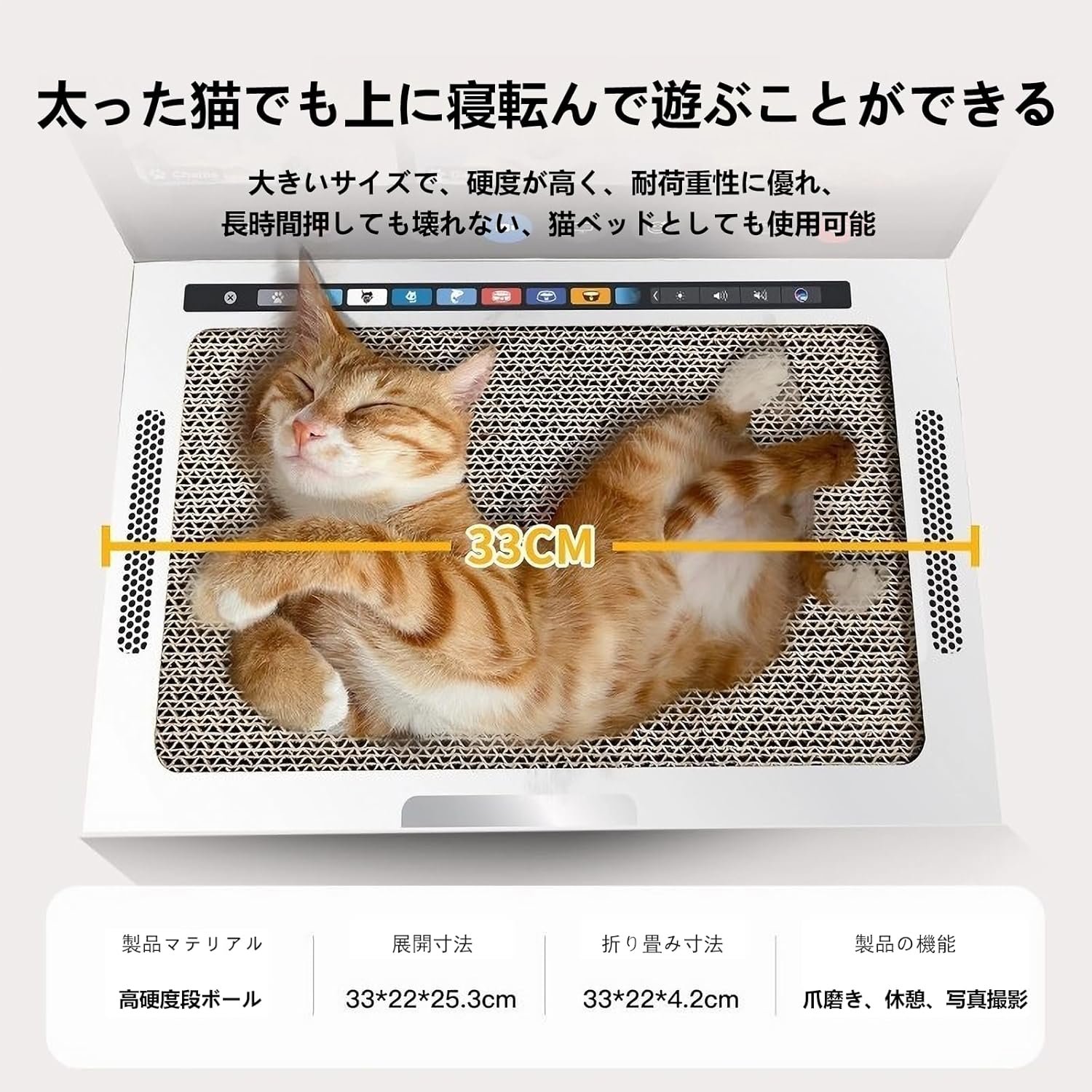 折りたたみ可能なデザイン、スペースを保存:ラップトップキャットスクラッチボードスクリーンを折りたたむと、スペースを占有することなく完全に平らな猫スクラッチボードを形成できます