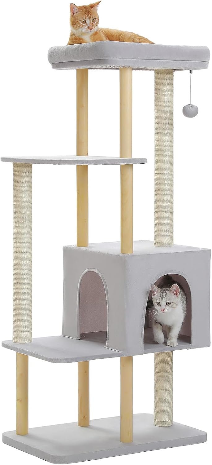 Pawz Road Cat Tower、Slim、Cat Tower、Toy、Multi-Headed、Claw Sharpener、Wood Grain Style、Stylish、Placed、Stable、Simple、Space Saving、caseable climable、durable、大きくて卓越したスタンド、インテリア、スタイリッシュ、スカンジナビア、家具、猫のおもちゃ、53.1インチ(135 cm(135 cm)