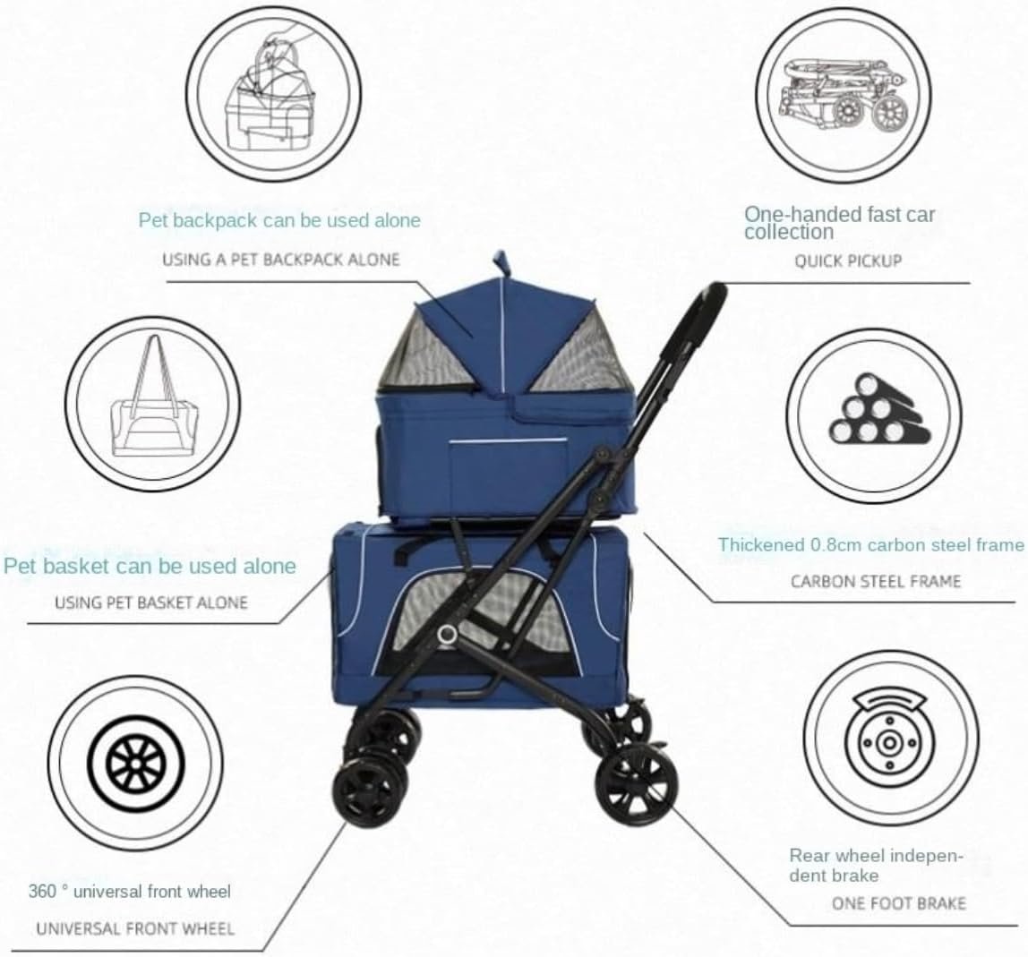3-in-1ダブルペットベビーカー:ダブルレイヤーペットベビーカーは、2つの取り外し可能なペットキャリアで設計されており、ペットベビーカー、キャリーバッグ、カーシートキャリア、またはペットクレートとして使用できるため、使用方法を決定できます。ショップ、ショッピングモール、病院、旅行、散歩などのさまざまな外出に使用する