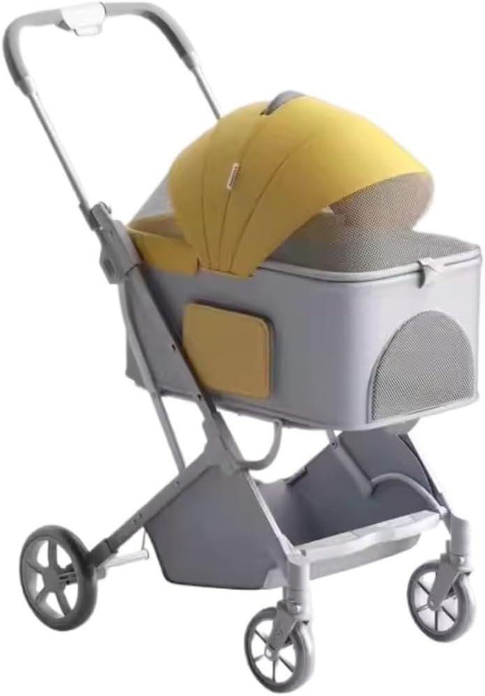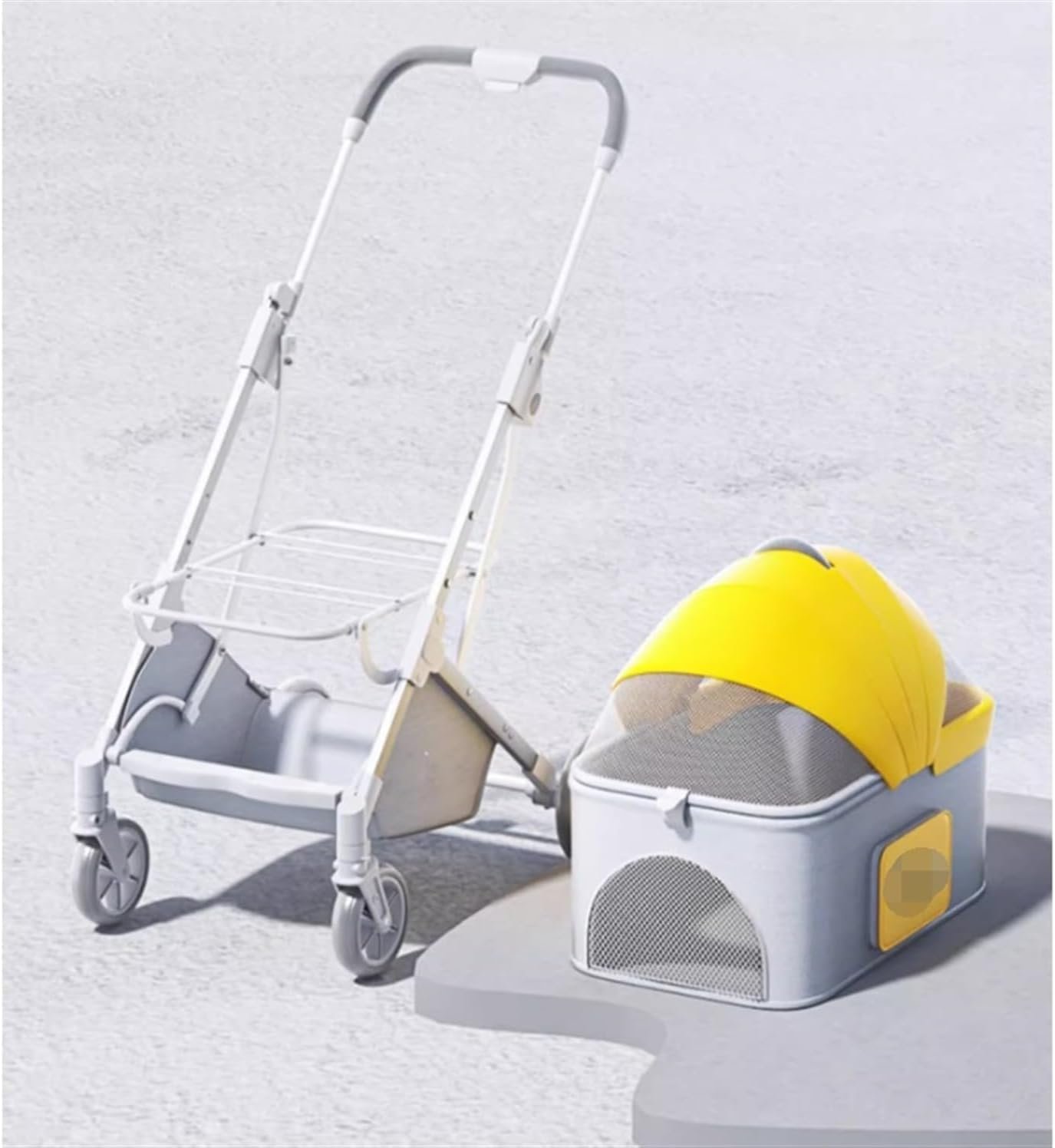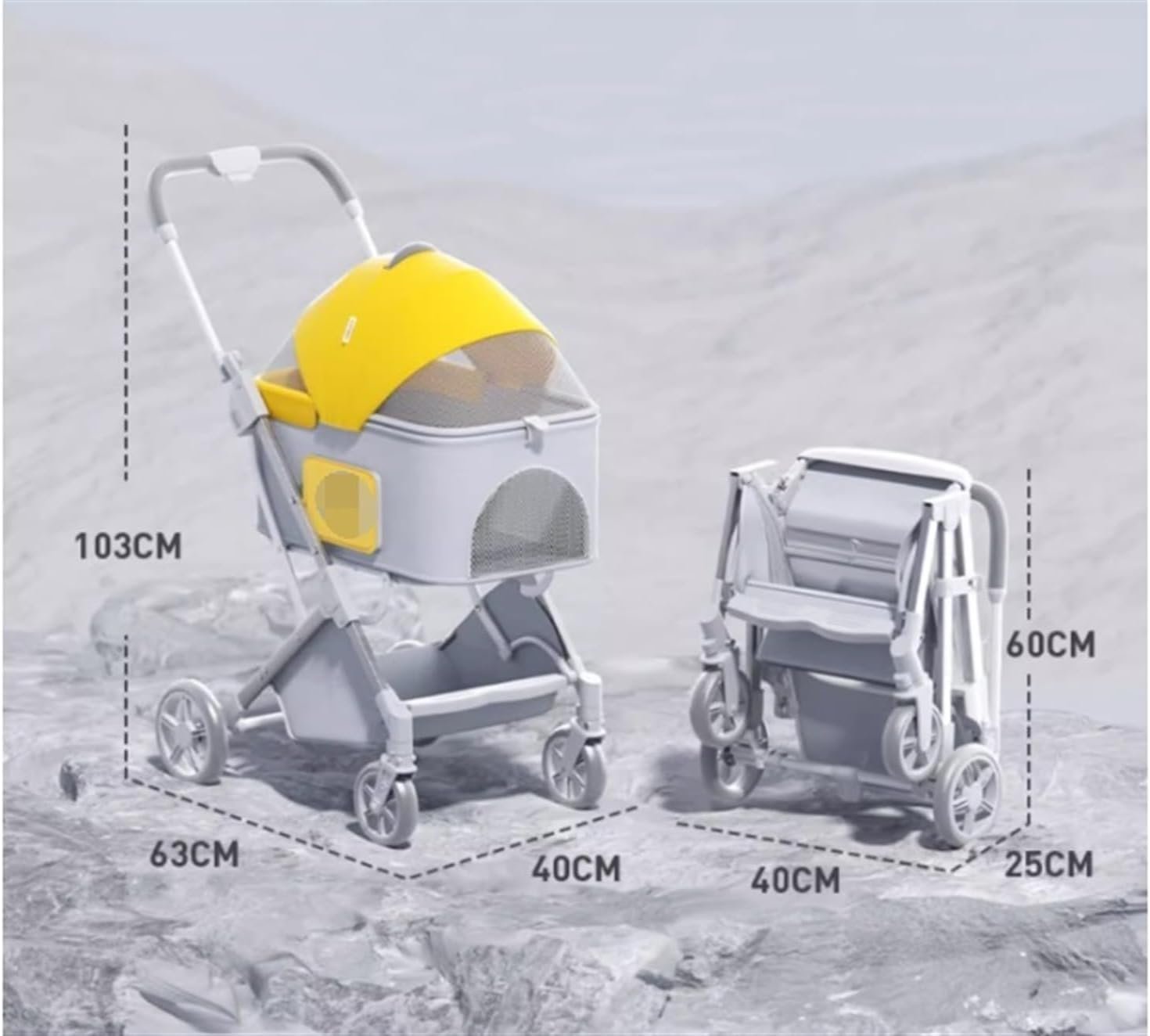 一番下には、ウォーターボトル、財布、ペットのおもちゃ、携帯電話、傘、その他の持ち物用の広々とした収納バスケットがあります。パッド入りのハンドルバーは快適なグリップを提供し、サンシェードを備えた上部の窓はあなたのペットの快適さを保証します