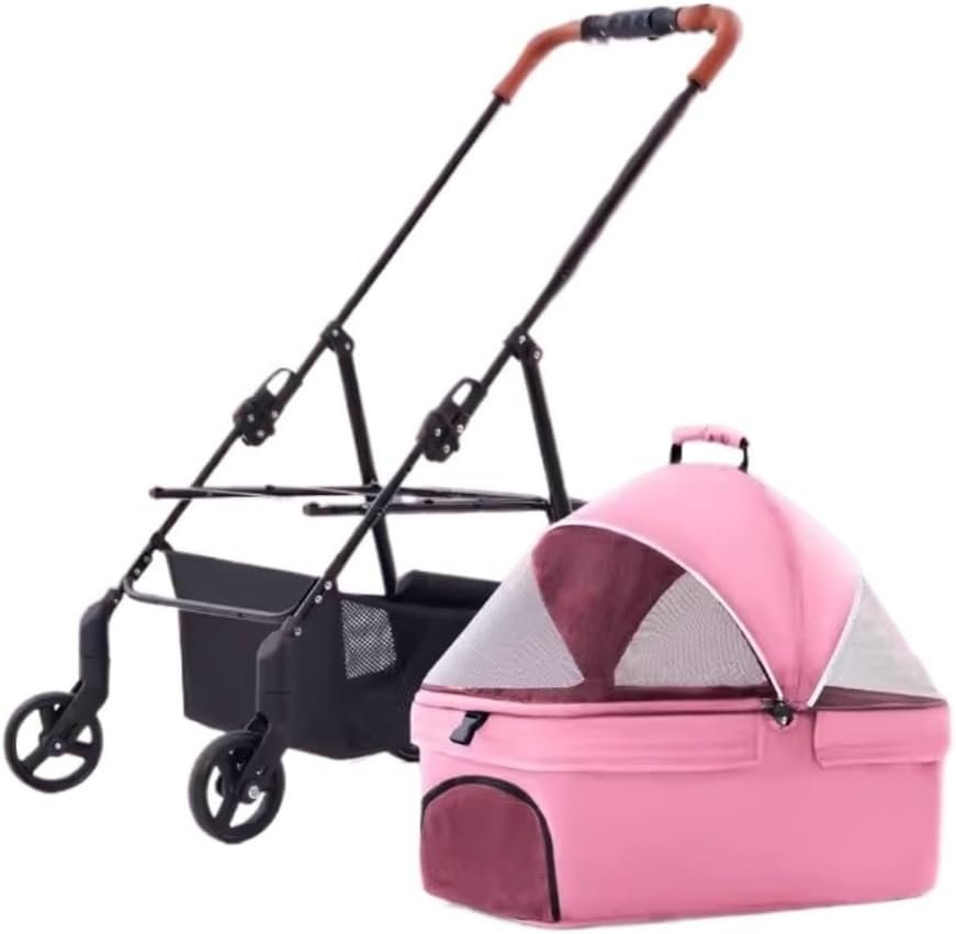 猫のバギードッグバギードッグベビーカー3-in-1折りたたみ猫犬ベビーカー4輪ペットベビーカーを備えたリムーバブルキャリア保管バスケット小犬用犬犬カートペットバギーキャリアフォールド可能(ピンク)
