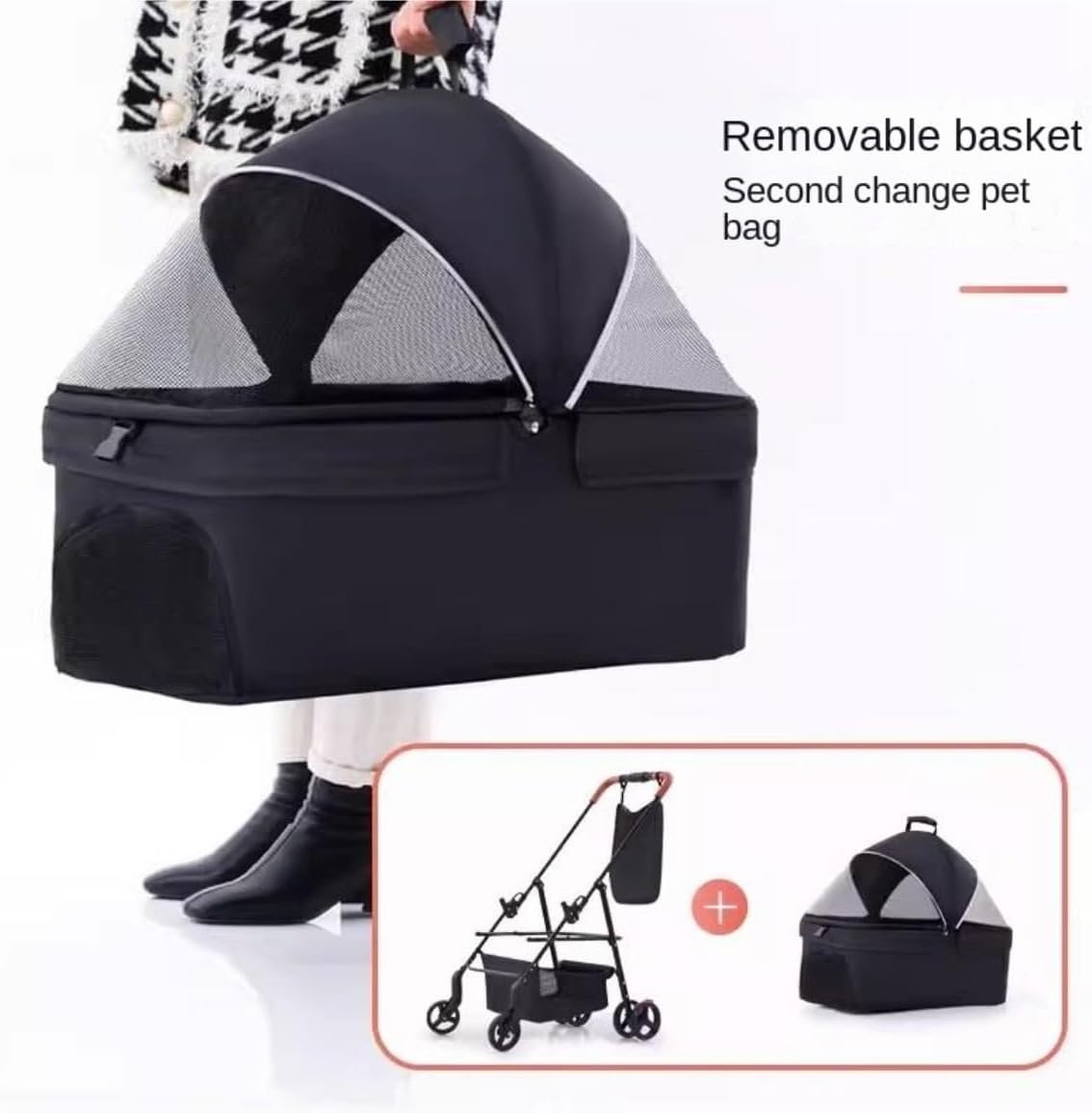 取り外し可能なキャリア:この3分の1ペットベビーカーには、旅行担体として簡単に取り外すことができる取り外し可能なバスケットが付属しています。また、車に座っているときにチャイルドシートとして使用することもできます。この中型の犬ベビーカーは、使用していないときに簡単に保管できる折りたたみ式フレームを備えており、車のトランクに留まるのに最適です