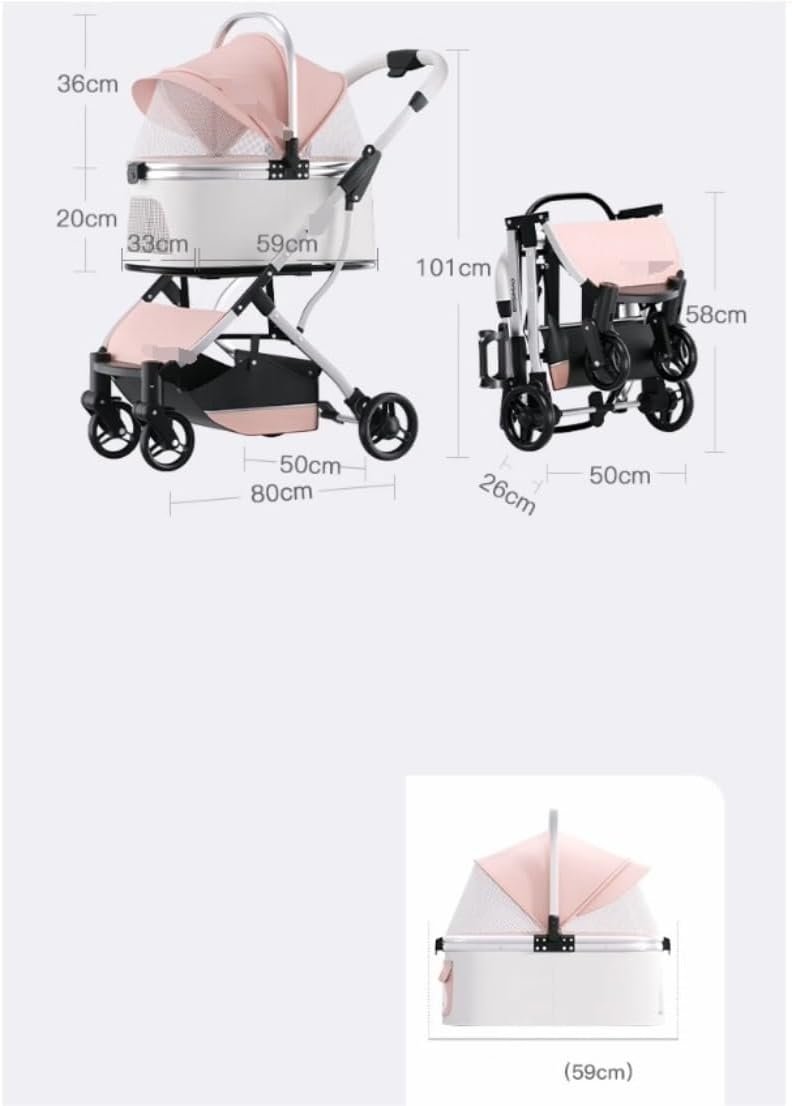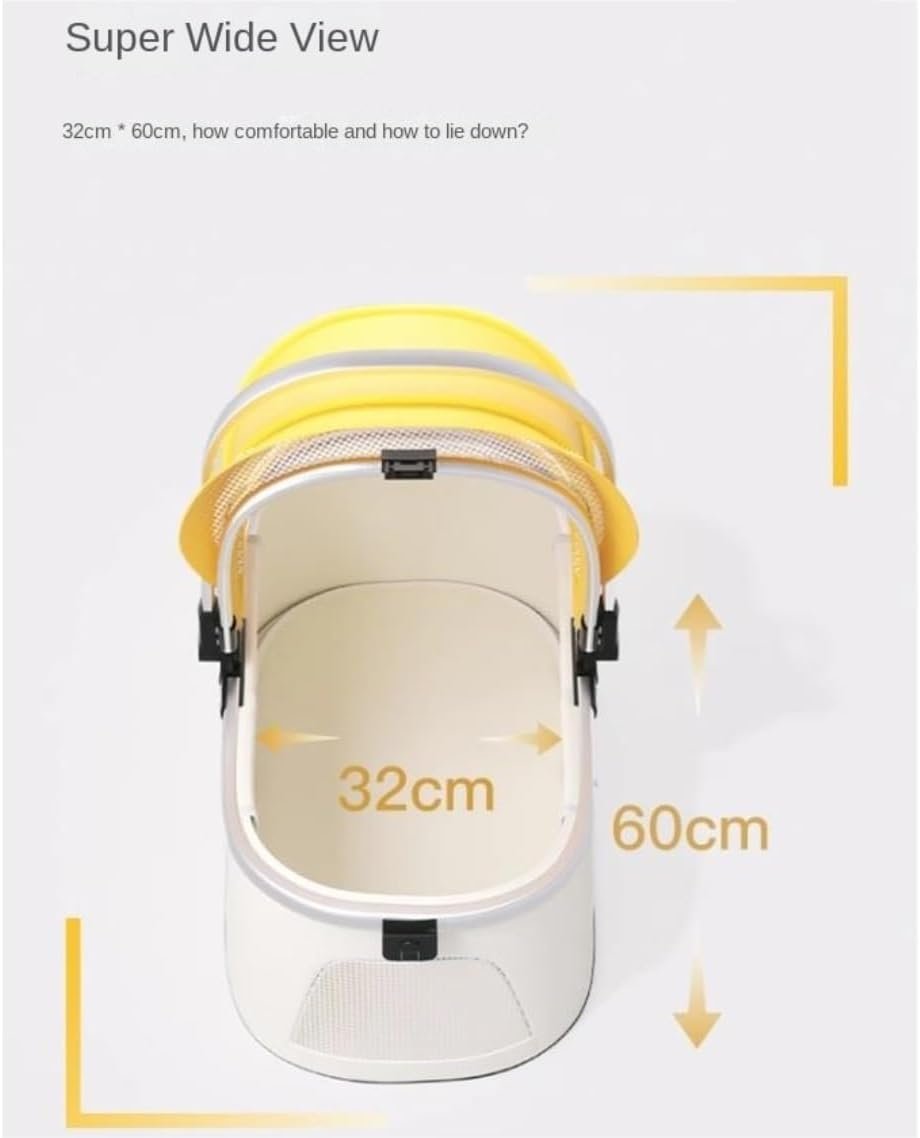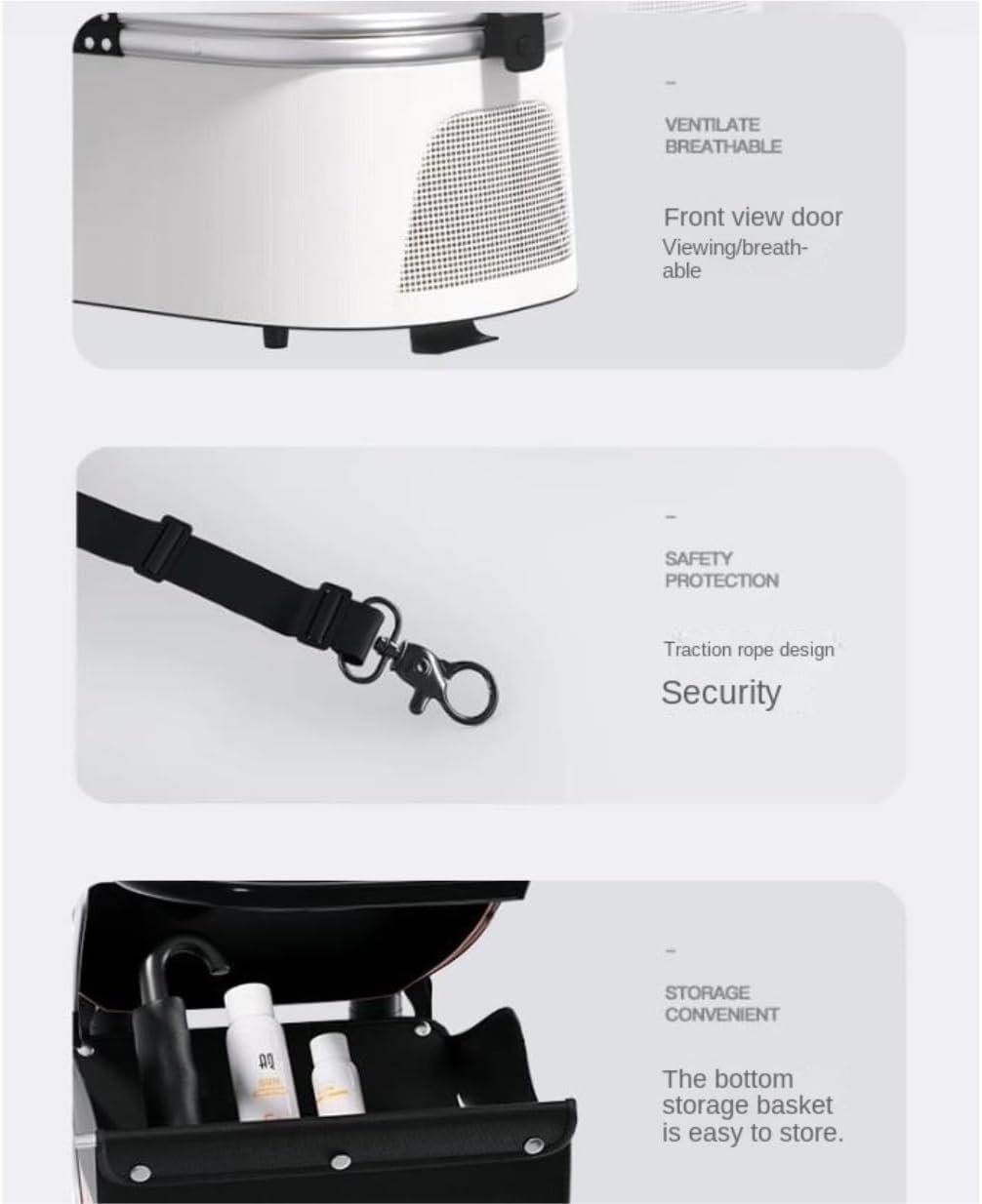 一番下には、ウォーターボトル、財布、ペットのおもちゃ、携帯電話、傘、その他の持ち物用の広々とした収納バスケットがあります。パッド入りのハンドルバーは快適なグリップを提供し、サンシェードを備えた上部の窓はあなたのペットの快適さを保証します