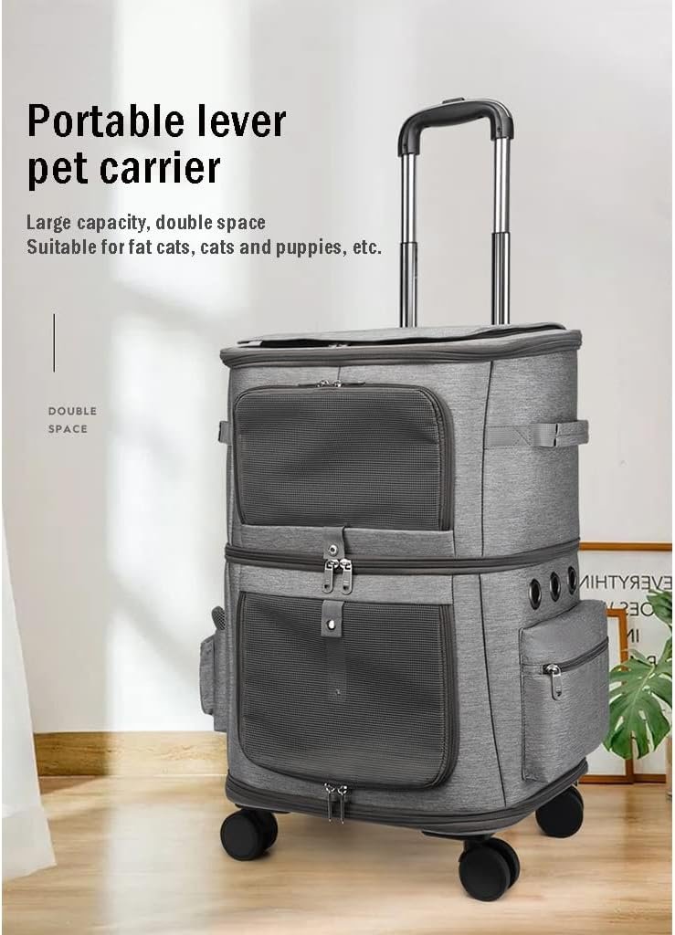 猫のベビーカー二層ペットキャリア猫、携帯用屋外旅行袋通気性の折りたたみ柔らかい編み物のペット箱犬小さな犬、子犬、猫、ウサギ