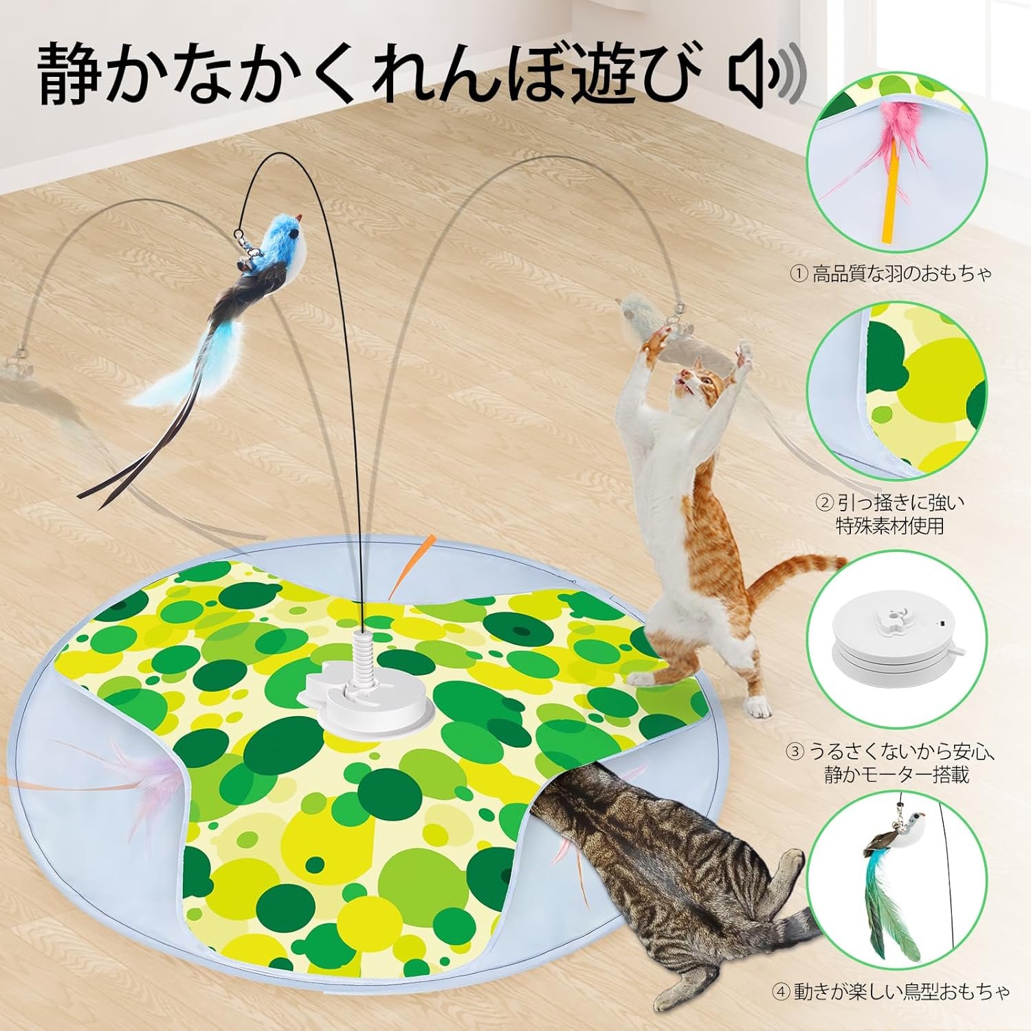 fun楽しさと長持ちするための静かな翼】可動式の隠れた翼、飛んでいる鳥、二重層ポリゴンカバーを備えたインタラクティブな猫のおもちゃ。あなたの猫は隠れて求めていることによって占領されたままにします。翼が摩耗している場合は、新しいおもちゃを購入せずに簡単に交換できます。退屈な住宅所有者の大人や子猫のための完璧なおもちゃ