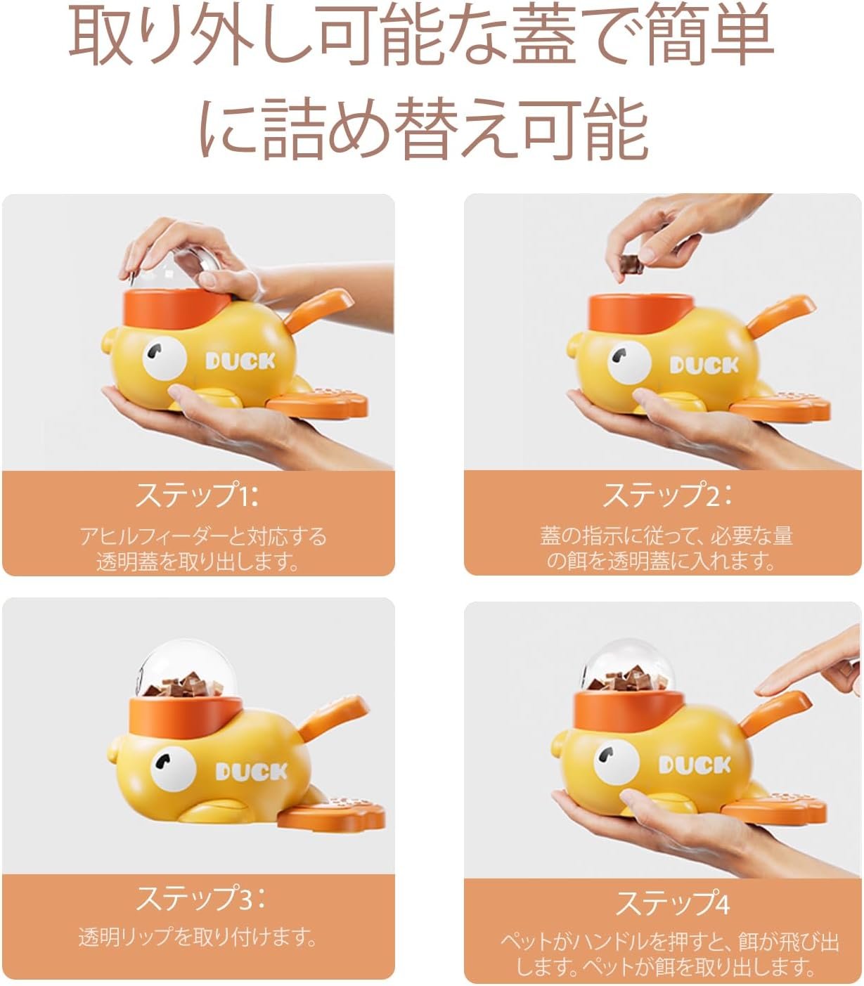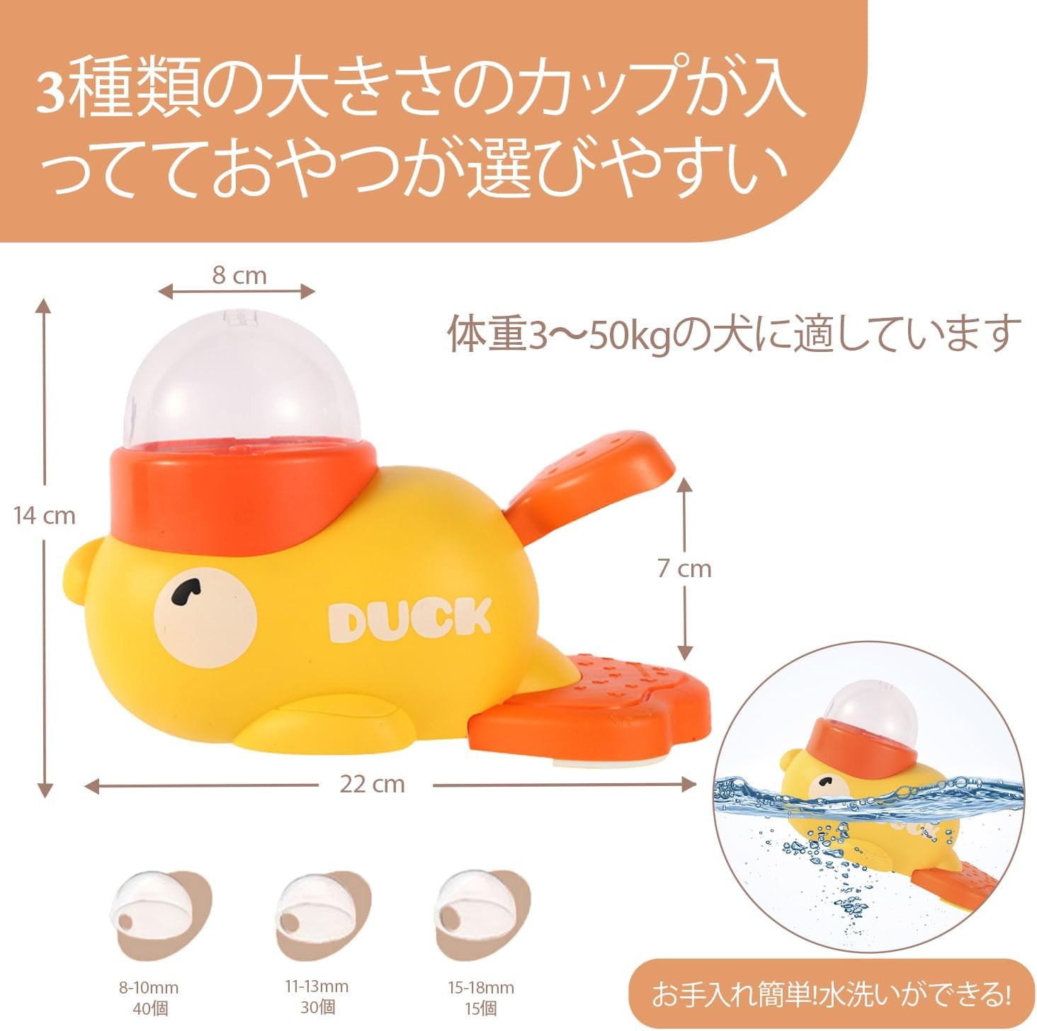 簡単な選択のための3つの異なるサイズのカップ:Duck Toyには、8〜10mm、11-14mm、16-18mmの異なる出口サイズの3つのふたが付いています。猫のおもちゃの自動部品は食器洗い機安全です(推奨温度は60°C未満です)。犬の教育玩具用の特別な抗菌コーティング(SIAA認定)は、カビや細菌が成長するのを防ぎます。強化されたABSプラスチック(厚さ0.1インチ(3 mm)の厚さなので、大きな犬の噛む習慣に耐性があります。すべての可動部品は、偶発的な嚥下を防ぐために直径4cm以上でなければなりません