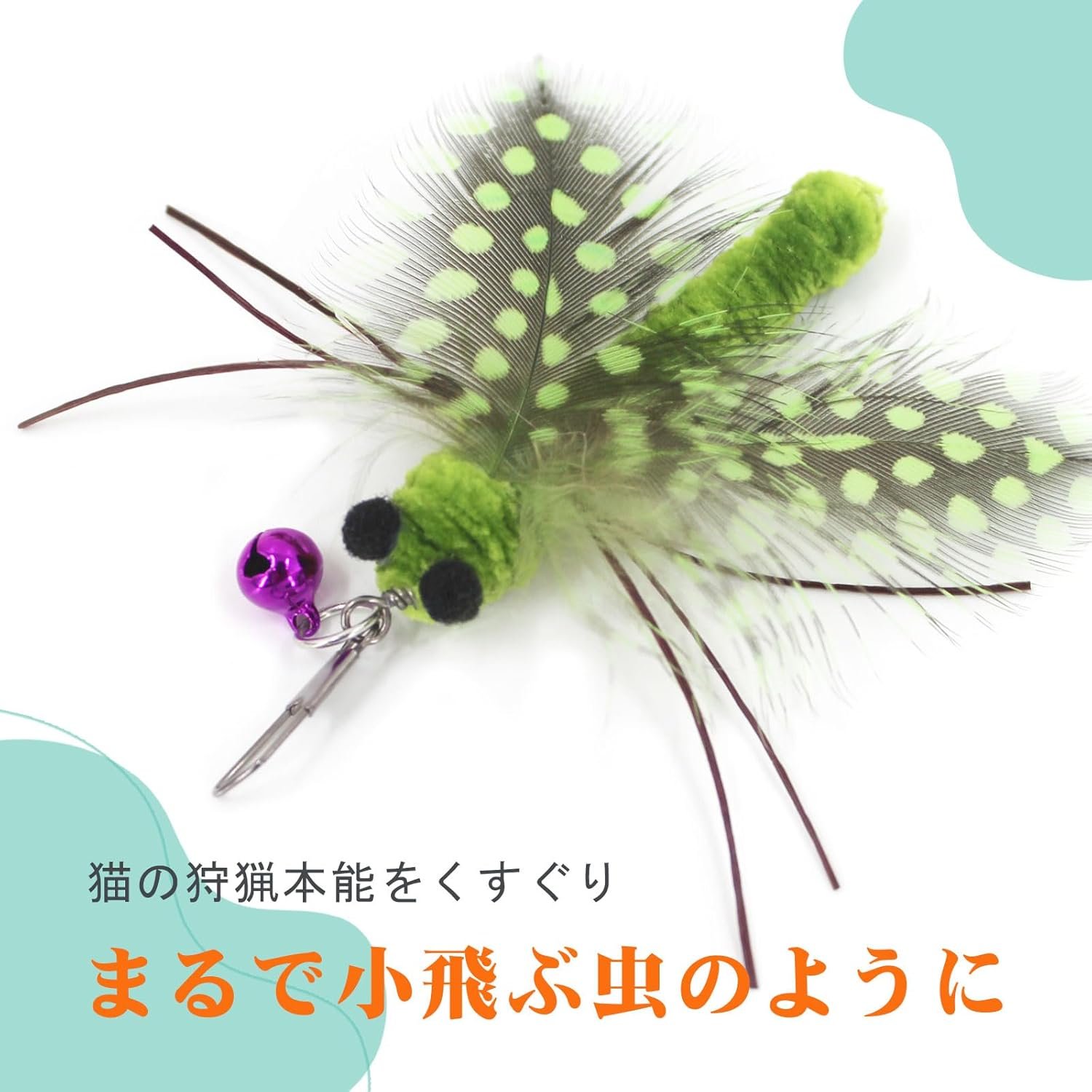 さらに楽しいためのベルが含まれています。猫の狩猟の本能を刺激するために押しつぶされると、ベルの音が鳴ります。興奮してあなたの最愛の猫の追跡を見てください