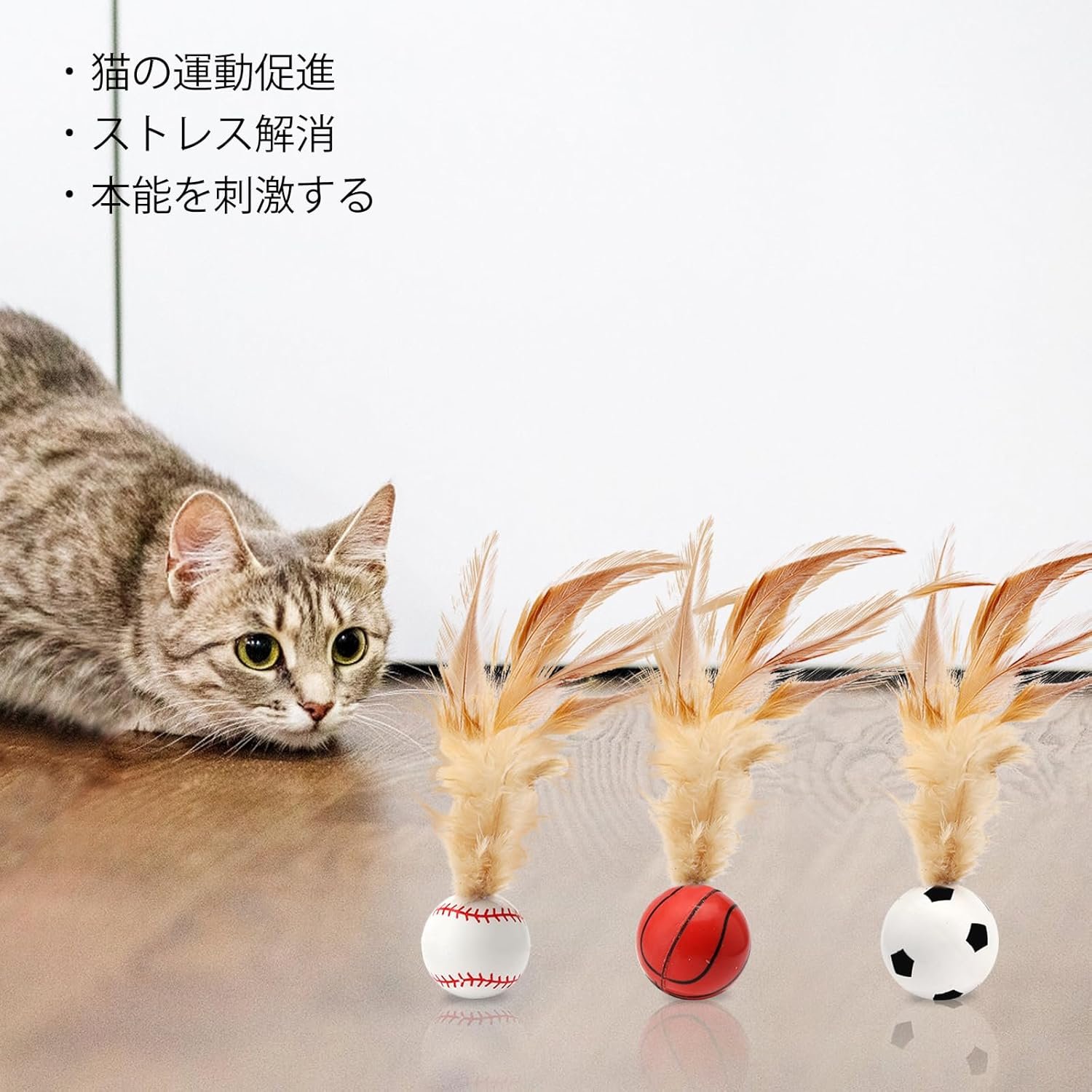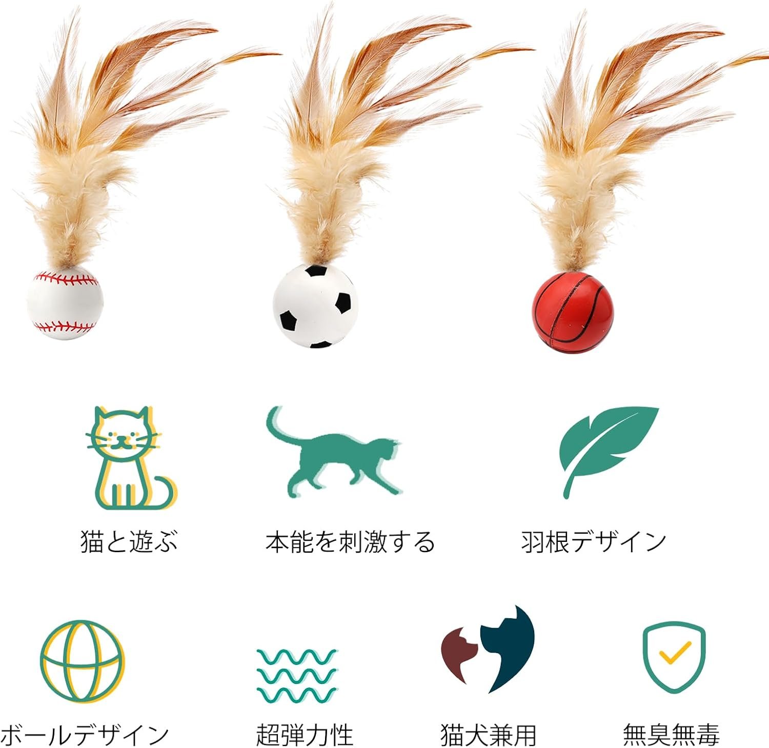 【高品質の素材と無臭&無毒cateこの猫のおもちゃのボールは、慎重に選択された高品質のゴムと本物の羽で作られています。また、長持ちするエンターテイメントを確保するために3セットになります