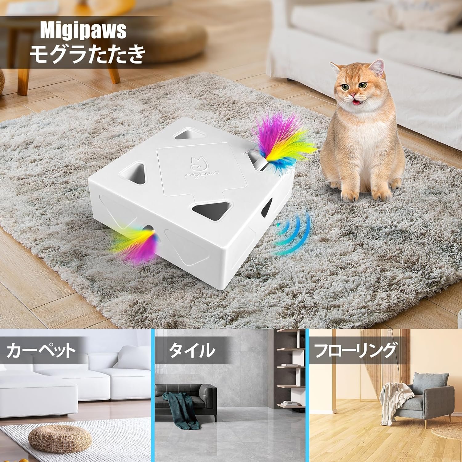 Migiポーズ猫のおもちゃ、インタラクティブオートマチック7ホールマウススワッターゲーム、屋内猫用の超楽しいスマートからのからかいおもちゃ、4つの交換用ブレードを備えたUSB充電式