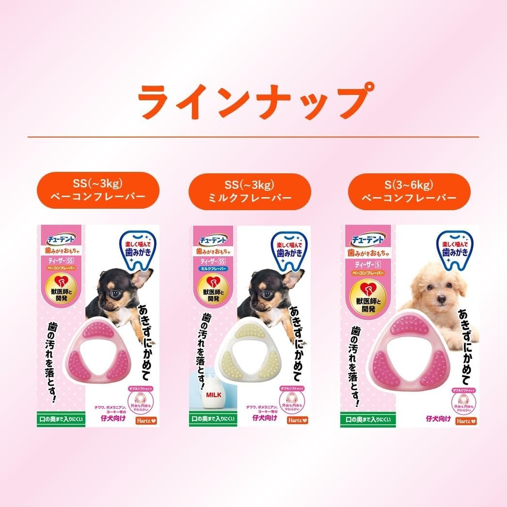 歯科用おもちゃティーザーダブルソフトタイプの犬のおもちゃ歯磨きおもちゃミニベーコンフレーバー|ハート|歯科治療|歯ブラシ|子犬