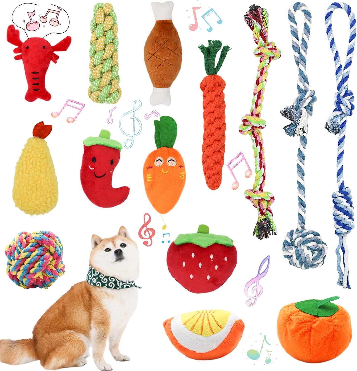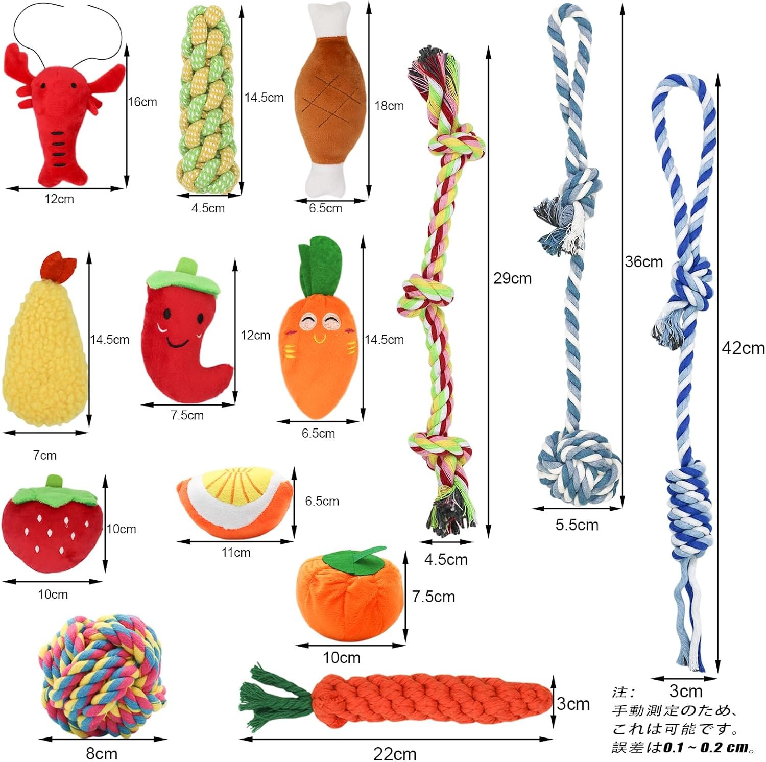 14ピースペットのおもちゃセット、サウンドドッグおもちゃ、犬のロープおもちゃ、犬の噛むおもちゃ、運動不足、ストレス緩和、耐久性、耐久性、清潔で、小/中犬に適した、洗える