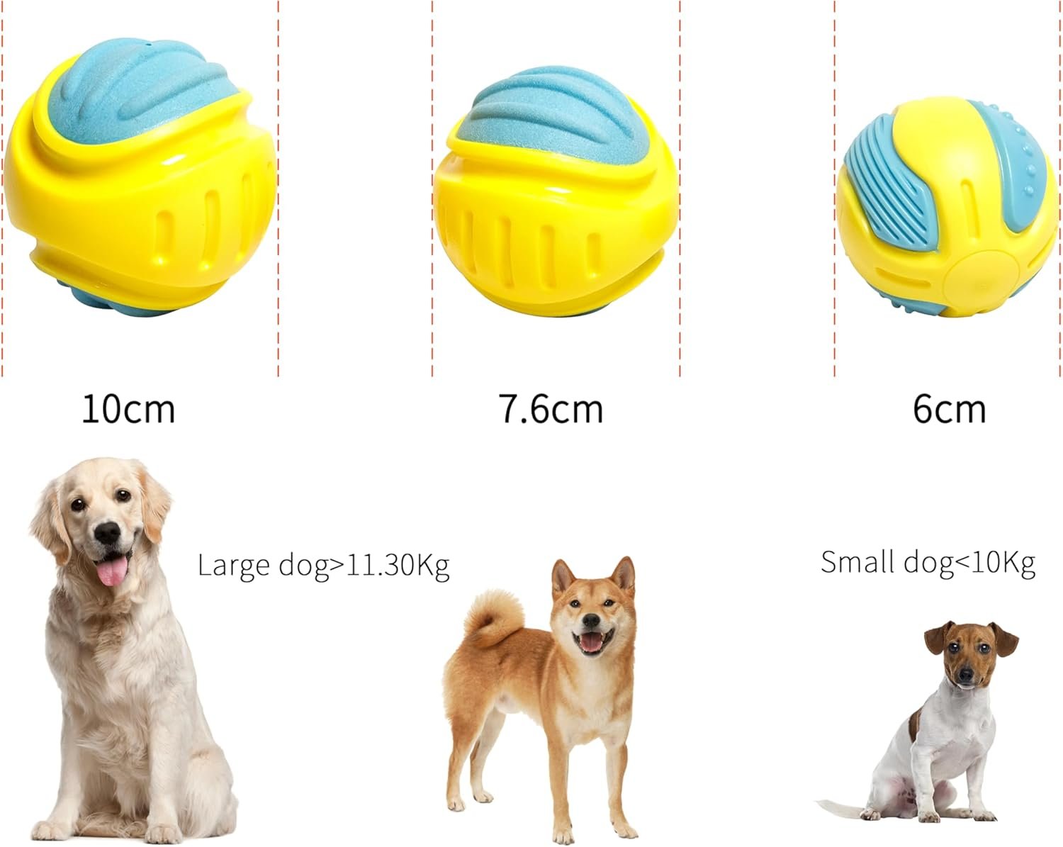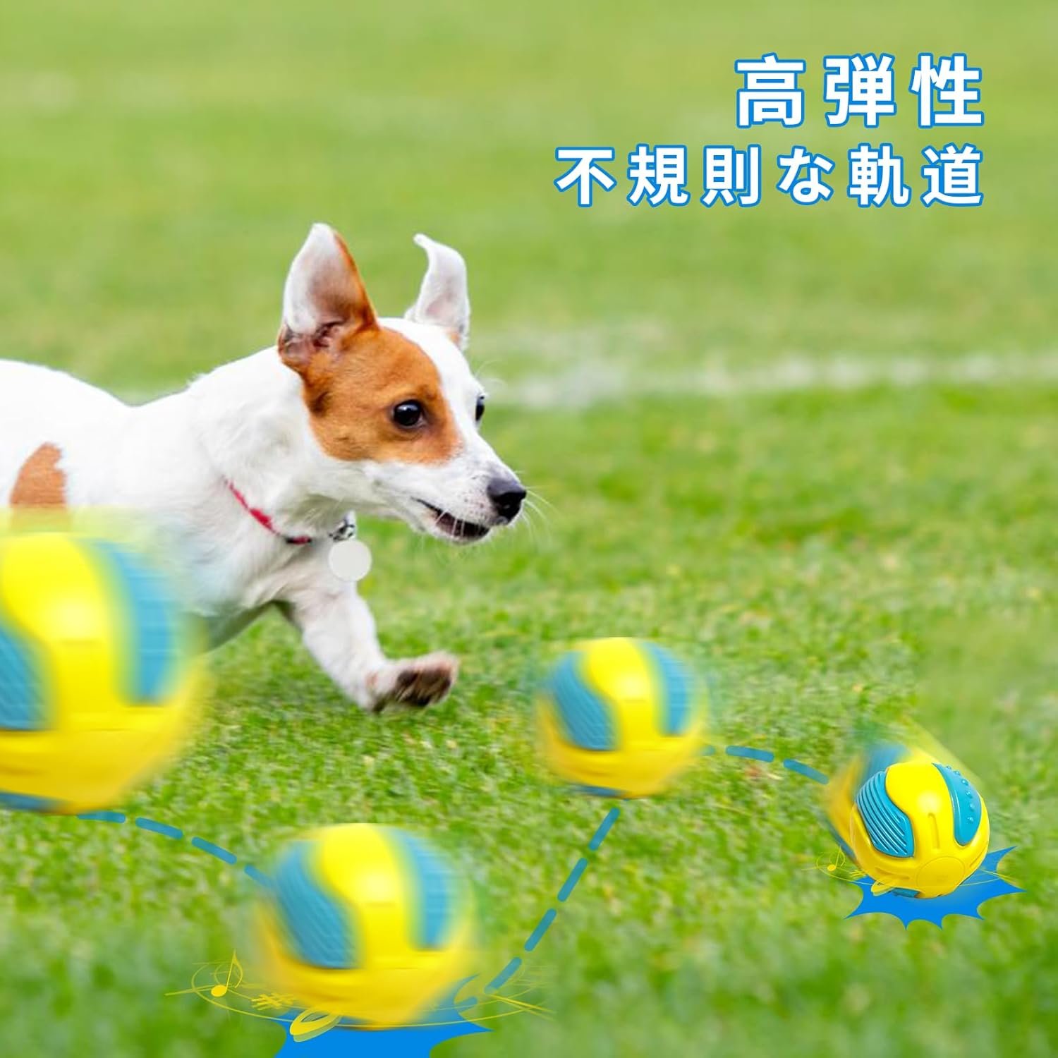エキサイティングなバウンス:予測不可能なボールのバウンスは、ジャンプと追跡が大好きな犬にとって、ゲームを魅力的でダイナミックで完璧にします。深い咬傷ゾーンは、しっかりしたグリップと簡単なアクセスを保証します鮮やかな黄色と青の色はどんな環境でも視認性を高めます