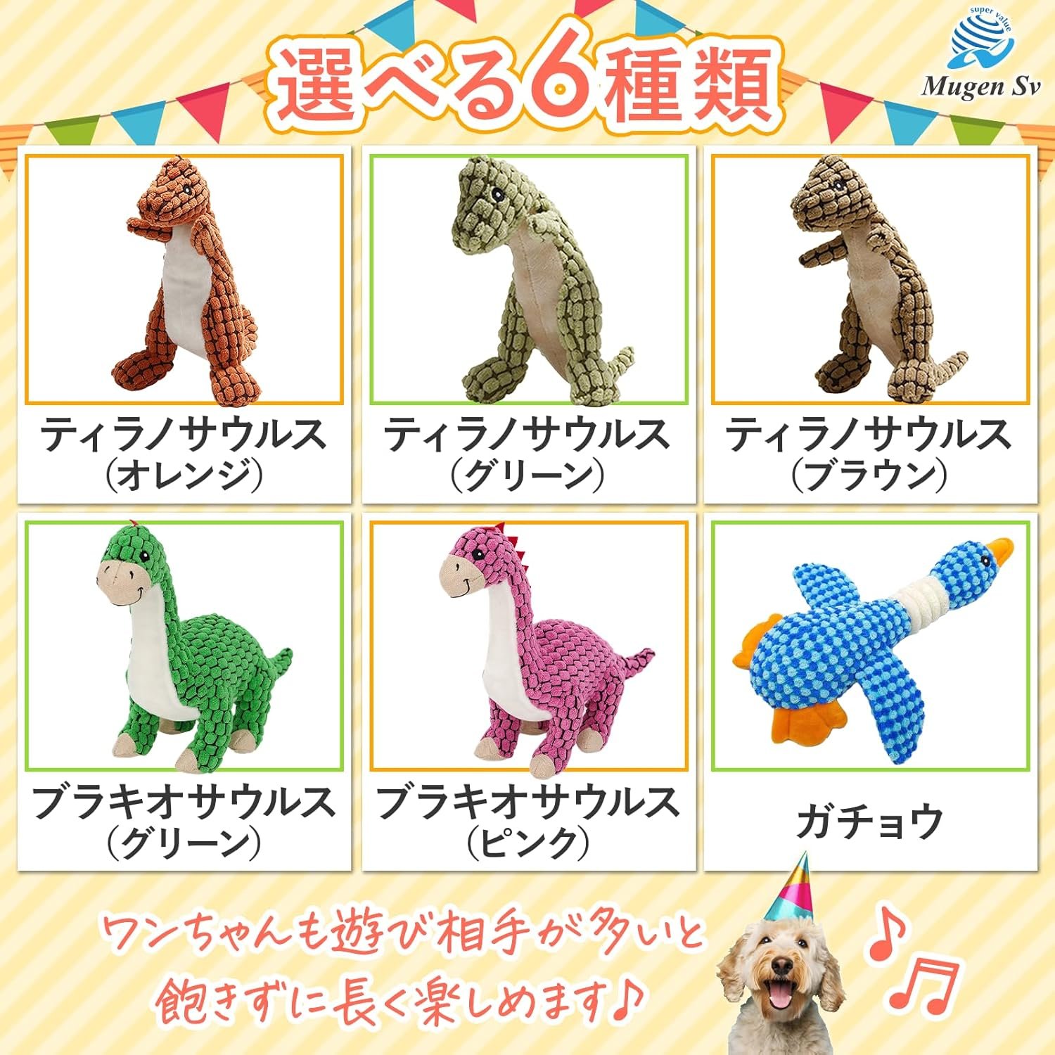 カミカミの仲間ムゲンSV犬のペットおもちゃ、恐竜、ぬいぐるみのおもちゃ、ストレスレリーフ、音、噛むおもちゃ、口臭予防、運動不足、テラノサウルス(緑)