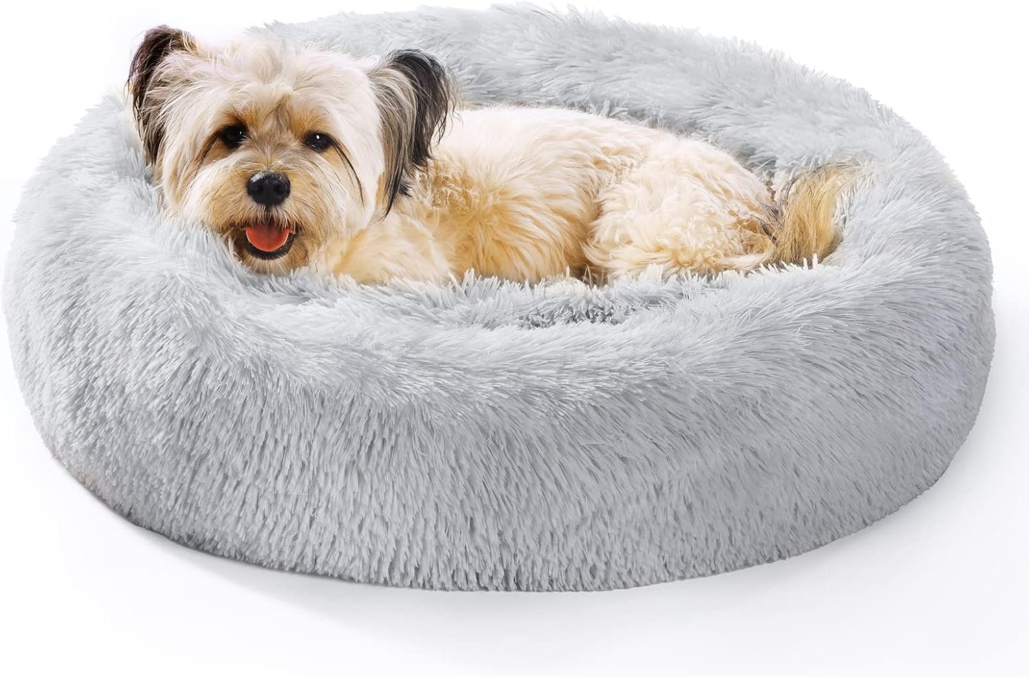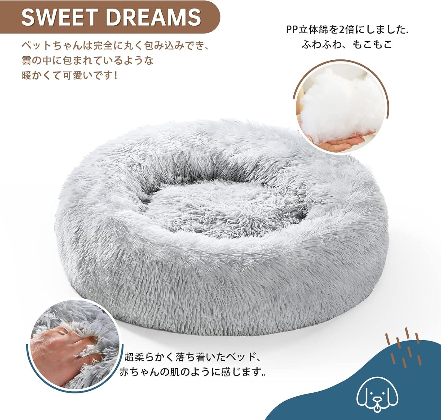 白い雲のような丸いベッド:このペットベッドには丸いデザインがあります。それは外側の周りで高く、真ん中が低く、あなたの犬の周りに完全に包まれています。あなたの犬が暖かく白い雲の真ん中に包まれているように見えるので、それはかわいい光景を作り出します。