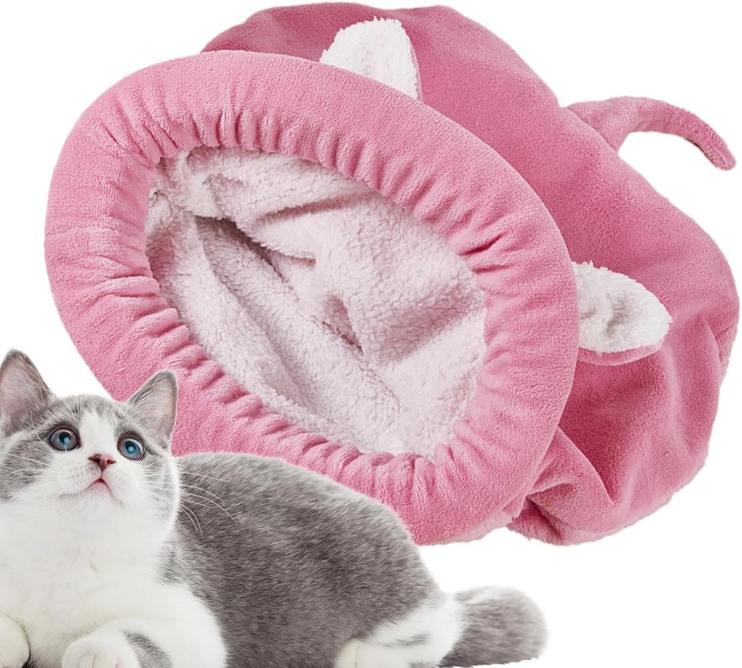 ペットの寝袋 – 猫の巣の寄り添い袋、猫のための冬の寝袋|柔らかい子犬のホストパッド子猫カウラー自己塗りつぶし猫のベッド家具、居心地の良い冬の温かい猫寝台屋内猫犬犬