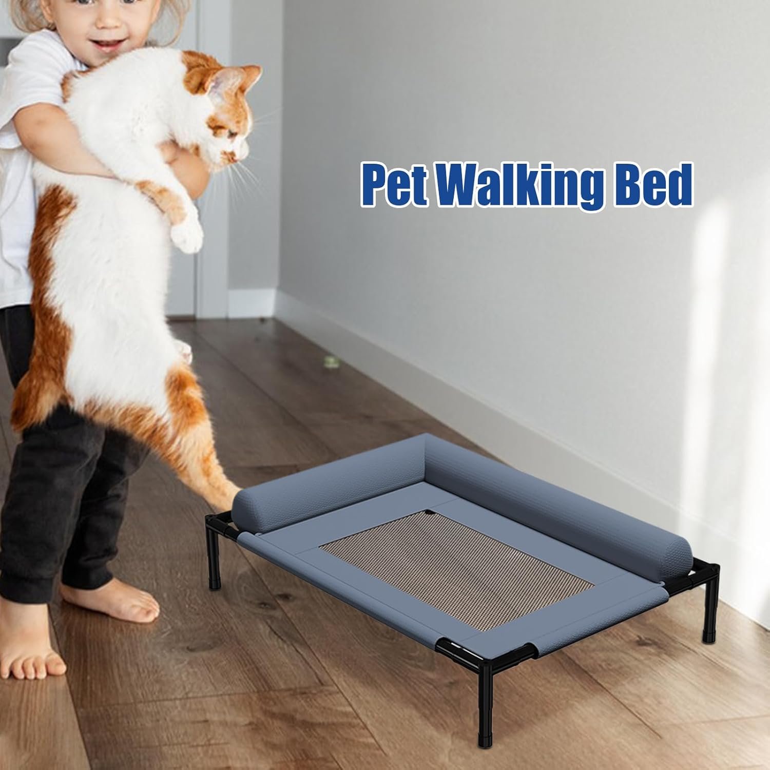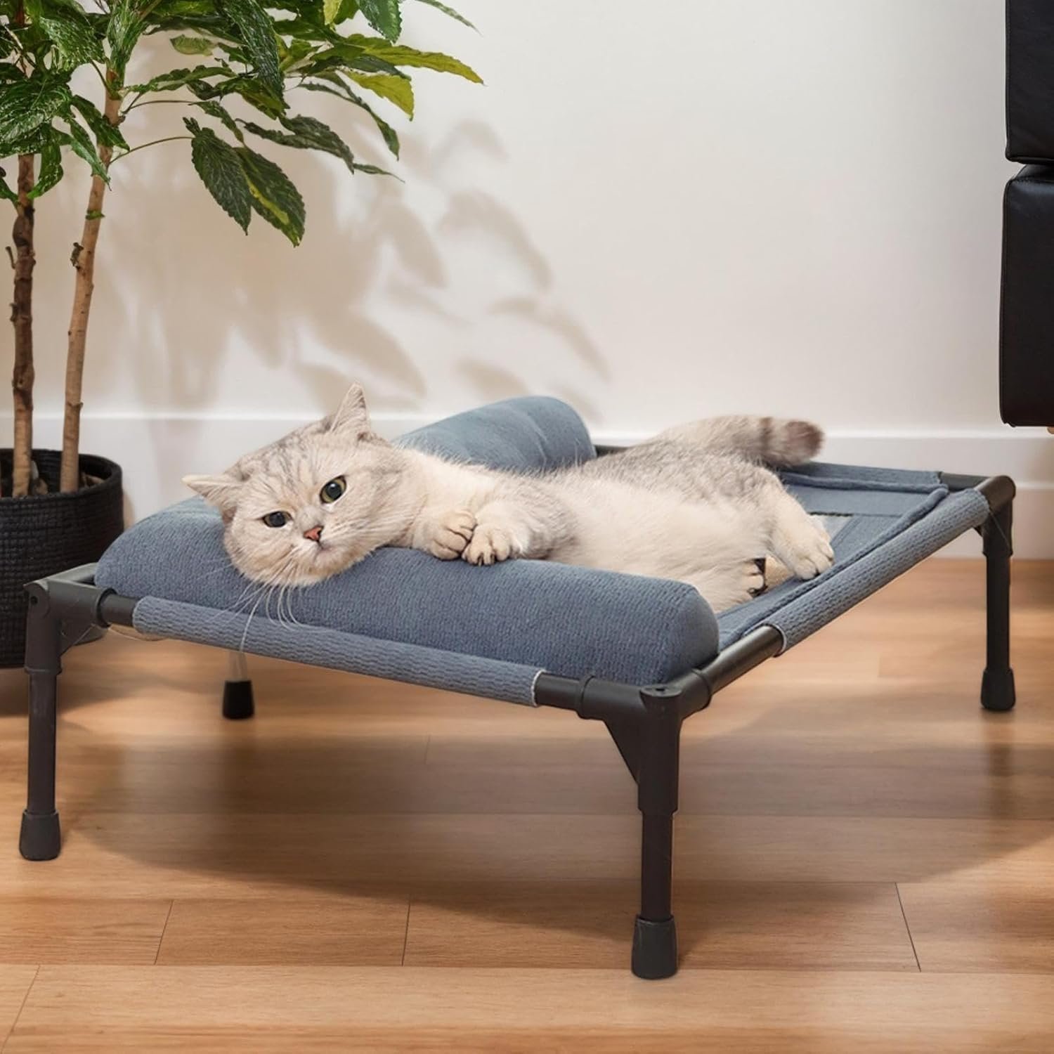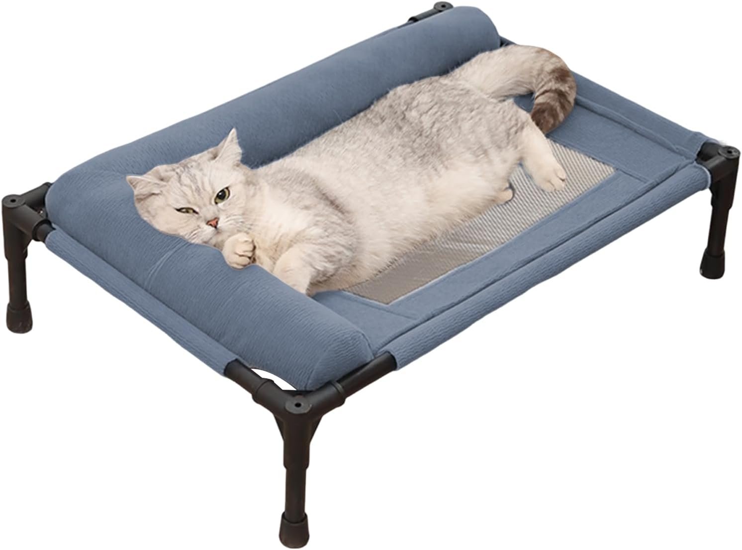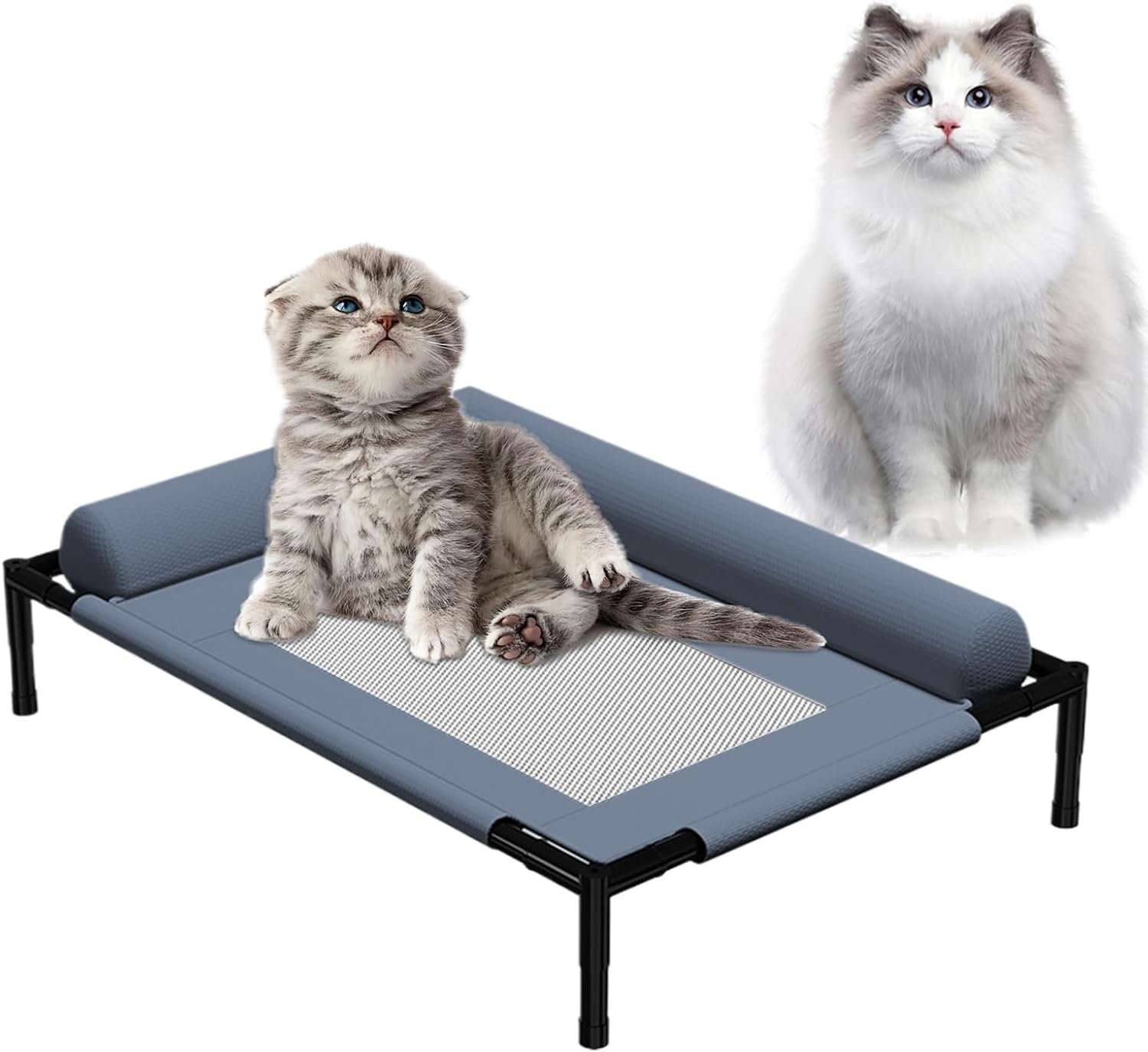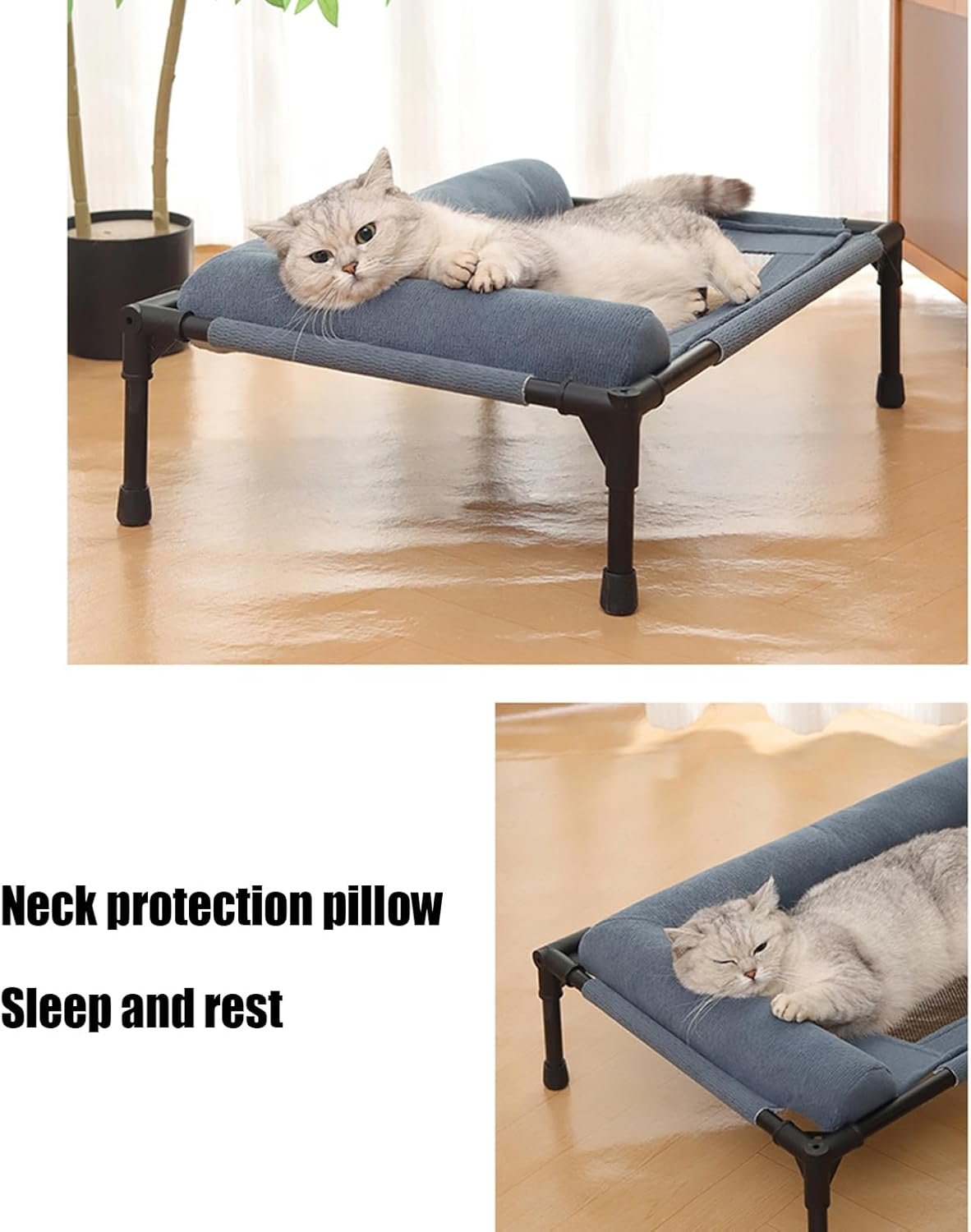 上げられた犬のベッド、枕とメッシュのある犬の冷却ベッド|猫パティオのための取り外し可能なペット家具日光浴旅行訓練ホーム芝生の地面