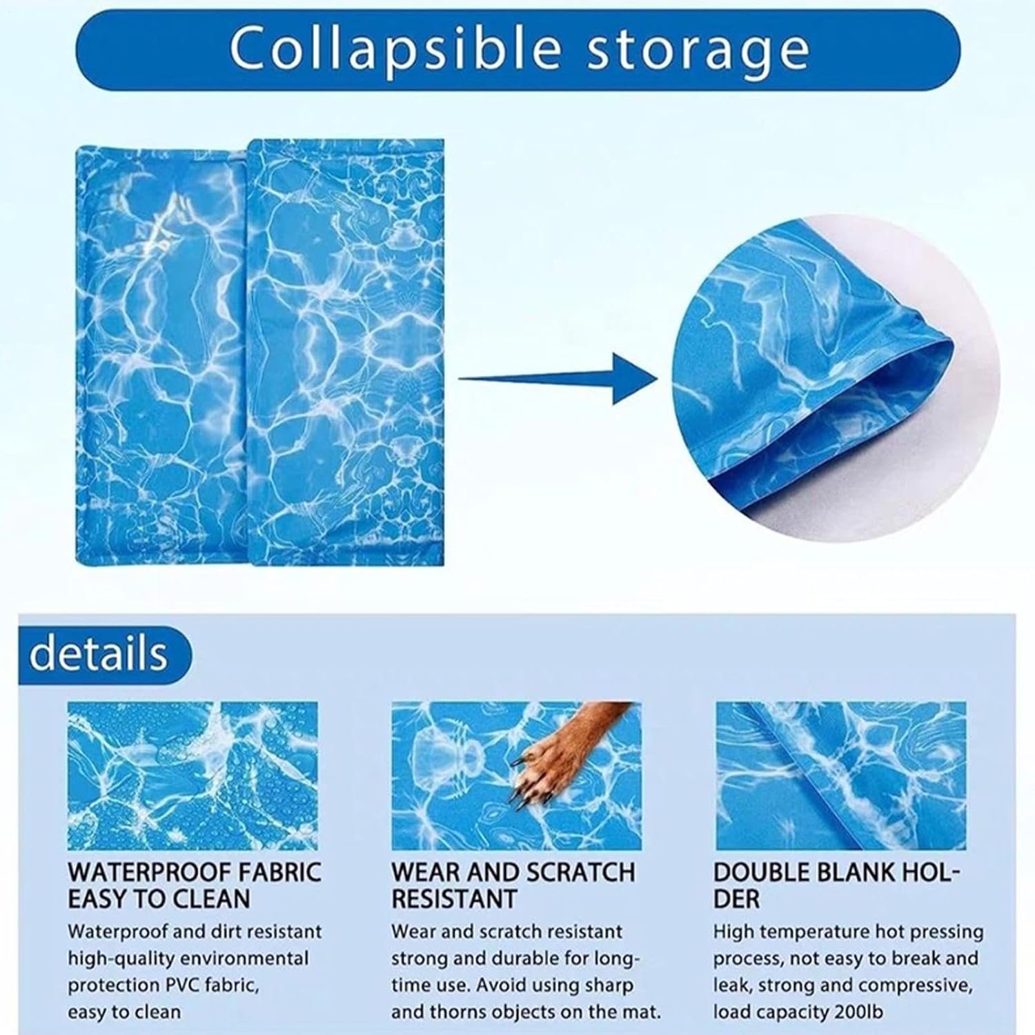 屋外体験の強化:所有者にとって実用的なソリューションであるこの冷却マットは、屋内と屋外で使用する能力を備えた汎用性を提供し、滑り止めデザインで安定性を確保しながら、旅行にきちんと折りたたみます